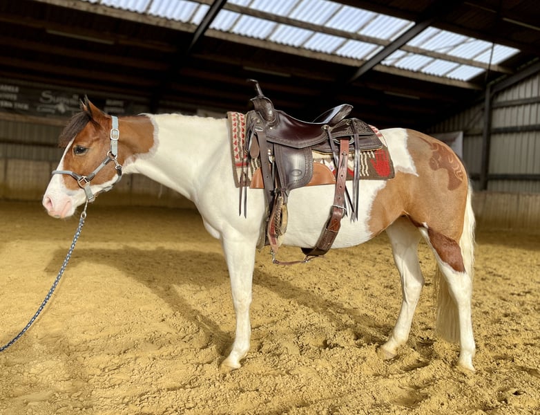 🦄 Te koop: Smart G Star Lizzy (2020) – Bay Tobiano APHA merrie 🦄 Op zoek naar een braaf, lief, betrouwbaar paard? Lizzy is een lieve en betrouwbare merrie die haar nieuwe beste maatje zoekt! ✨ Waarom Lizzy bijzonder is: • Zeer braaf bij buitenrijden, hoefsmid, dierenarts en wassen • Kan met of zonder bit/zadel gereden worden • Geschikt voor kinderen met basiservaring en iets onzekere ruiters alsook volwassenen • Actief, leergierig en doet nooit iets onverwachts • Cutting getraind, ideaal als recreatief western paard. Let op: Niet geschikt voor intensieve trainingen en wedstrijden met stops, spins en snelle wendingen. 🐴 Praktisch: • kent 24/7 buiten in kuddeverband staat hoger in rang. Staat nu in stalling. • Regelmatig ontwormd en geënt • 5-panel N/N door ouders • Mogelijk geschikt als kinderpony • Alleen trailer-laden • 1,37 m • Recente röntgenfoto’s 💌 Lizzy verdient een liefdevol huis waar ze net zo gelukkig is als bij mij. Stuur een bericht en vertel hoe zij bij jullie past!