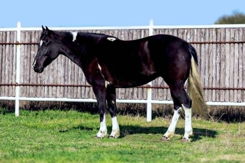 ONLINE AUCTION Place your bids at www.PlatinumEquineAuction.com Starting Bid $3500 Auction ends March 30th, 2025 Need a new saddle? Check out White Rock Saddles on our website or Facebook! Zora is a 14.1H, 5 yr old TRUE black overo paint mare. This GORGEOUS mare has one of the SWEETEST personalities around. She is a super fun, willing to please all around mare! She loves riding outside and also has potential in the arena to go in any direction! She’s been owned by the same people her whole life where they just used her to pleasure ride! Zora is talented enough to go on to make a great youth prospect or trail horse for someone looking for a fun one to enjoy! She rides good, knows all the major basics and is ready to go on with! She walks, trots and lope when asked and stops good! She’s not spooky, no buck, bolt or rear and is easy to get along with! She absolutely loves attention and will be the first one to greet you in the barn or pasture! Zora naturally takes to all new things and is very bravely adventurous. She is safe and gentle, loads, leads and bathes great! She would be the perfect addition to any family looking for a fun one to go one with in any discipline! She’ll go all day without a complaint! Don’t miss this sweet, fun, willing to please STUNNING black and white mare. They don’t come around colored like her often with her personality and potential! More pics and videos on her website page at northtexashorsecompany.com/zora. Please call Blair with North Texas Horse Company for more info at 817-757-3046. We are located in Weatherford, TX and can help arrange affordable shipping to anyone!! ONLINE AUCTION Place your bids at www.PlatinumEquineAuction.com Starting Bid $3500 Auction ends March 30th, 2025 Need a new saddle? Check out White Rock Saddles on our website or Facebook!
