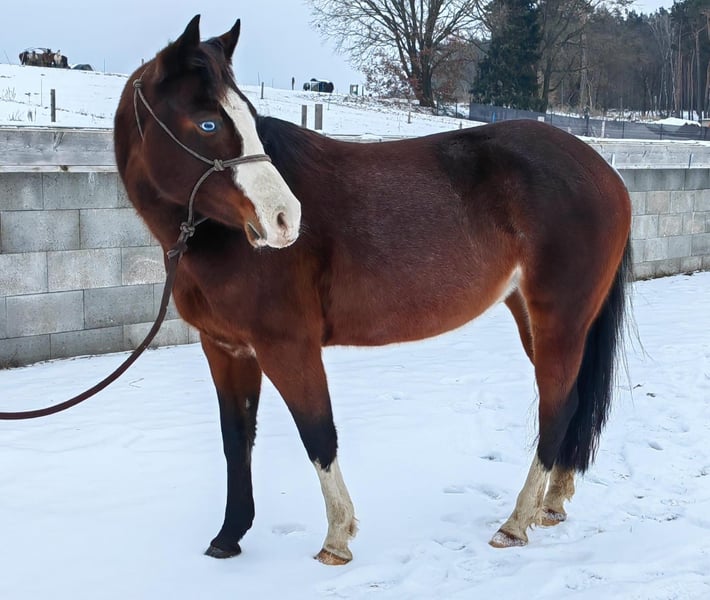 Im Auftrag MG Spat A Spooky – „Haylee“ 5½-jährige Quarter Horse Stute mit Reining-Abstammung Haylee ist eine talentierte, fein gerittene Stute mit viel Qualität und Perspektive für den Turniersport. Sie verfügt über ein sehr gutes Papier mit namhaften Reining-Linien – unter anderem Spooks Gotta Gun und Smart Chic Olena – und bringt sowohl genetisch als auch vom Typ her alles mit, was man sich für den Westernsport wünscht. Optisch überzeugt Haylee durch ihren außergewöhnlichen Look: eine schöne Blässe im Gesicht und ein markantes blaues Auge verleihen ihr einen besonderen Ausdruck. Sie war in professioneller Grundausbildung, hatte anschließend eine Pause und befindet sich aktuell wieder im Beritt. Haylee kann jederzeit angeschaut und probegeritten werden. Unter dem Sattel zeigt sie sich sehr weich, fein an den Hilfen und mit enorm viel Potenzial für die weitere sportliche Ausbildung. Haylee ist sensibel im Reiten und möchte mit Gefühl und einer feinen Hand geritten werden. Daher eignet sie sich am besten für einen erfahrenen Westernreiter mit Turnierambitionen, der ihre Qualität zu schätzen weiß und sie entsprechend fördern möchte. Vor drei Jahren wurde Haylee vollständig durchgeröntgt – ohne jeglichen Befund. Entsprechende Röntgenbilder sind vorhanden und können bei ernsthaftem Interesse gerne eingesehen werden. Im Umgang ist sie unkompliziert und angenehm: verladefromm geimpft ekzemfrei aktuell vorne beschlagen Ein Pferd für Reiter, die echte Qualität, Rittigkeit und Perspektive suchen – und bereit sind, fein zu reiten statt zu drücken. Weitere Informationen sowie Terminvereinbarung zum Kennenlernen gerne auf Anfrage.