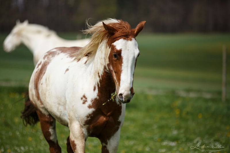 Na sprzedaż jest moja 6-letnia klacz Paint Ivy, ma około 152 cm wzrostu, posiada pełne papiery (rodowód w zdjęciach). Do drugiego roku życia była u hodowcy, tam wychowała się w stadzie, a ja kupiłem ją w 2021 roku. Do 4. roku życia mogła cieszyć się podstawowym szkoleniem, była delikatnie i powoli szkolona przeze mnie, jeżdżona w stylu western. Większość pracy wykonałem sam, ale miałem również trenerów do nauki. Ivy mieszka w stajni otwartej, zna również boksy. Jest przyzwyczajona do siana i pastwiska 24/7. W stadzie zajmuje dobre miejsce w hierarchii. Klacze i wałachy to dla niej żaden problem. Długo chodziła bez podków, w międzyczasie miała 4 duplosy, specjalne podkowy z przodu, a teraz znowu jest bez podków. Niestety, w październiku 2024 roku nagle zaczęła kuleć. W szpitalu weterynaryjnym w Zurychu zdiagnozowano u niej chorobę strzałkową. Aktualnie chodzi bez kulawizny po wielokrotnym leczeniu pijawkami. Ponadto ma PSSM2 (MIM) n/p8, co można świetnie zarządzać przy odpowiedniej diecie mineralnej i ewentualnym przykrywaniu. W obcowaniu jest absolutnie grzeczna, zawsze do użytku, cieszy się, gdy coś się z nią robi, chce sprawiać przyjemność. Cieszy się z każdego, nie potrzebuje koniecznie osoby, do której ma szczególny stosunek. W terenie sama i w grupie jest bardzo miła, traktory, psy, dzieci itp. nie stanowią problemu. U weterynarza i kowala jest bardzo grzeczna, regularnie miała zabiegi osteopatyczne i szczepienia. Ivy NIE jest sprzedawana jako klacz hodowlana i nie powinna brać udziału w dużych zawodach. Życzę sobie dla niej absolutnie najlepszego miejsca, najlepiej stajni otwartej, z dużą ilością pastwiska. Może być jeżdżona, ale tylko w ograniczonym zakresie ze względu na diagnozę w nogach. Jazda w terenie, praca z ziemi, wycieczki itp. są dla niej świetne. Z powodu diagnozy w maju umieściłem ją na ogromnym pastwisku, gdzie może po prostu być koniem i regenerować się. To jej bardzo pomogło. Jest obecnie nie trenowana, więc nie można jej przetestować. Na jesieni zabiorę ją z powrotem do stajni i znów ją wytrenuję, wtedy będzie można ją przetestować. Nie mam presji czasowej, dlatego spokojnie wybiorę odpowiednią osobę dla niej. Liczy się miejsce, a nie cena, i oddam ją tylko do domu z 5 gwiazdkami.