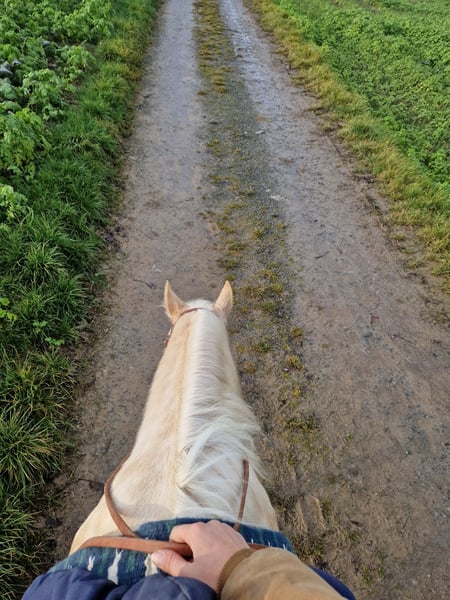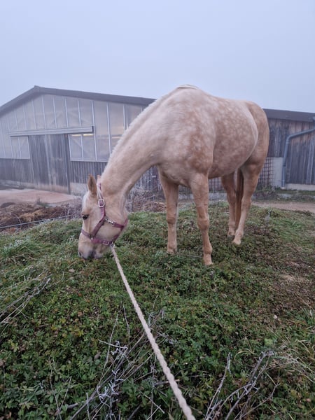 Unsere liebe Holly ist eine Stute mit einem ganz besonderen Wesen. Sie ist freundlich, feinfühlig und zeigt im täglichen Umgang eine angenehme Ruhe. Nicht schreckhaft, klar im Kopf und sehr menschenbezogen- eine treue Seele, die ihrem Menschen gefallen möchte. Beim Einreiten hat sie sich von Anfang an kooperativ und mutig gezeigt. Sie war über den Sommer drei Monate im Beritt und wird aktuell von mir (Trainer B Westernreiten) weiter ausgebildet. Besonders im Gelände fühlt sie sich wohl- sie geht neugierig und entspannt, sowohl allein als auch in der Gruppe. Holly braucht etwas Zeit, um sich auf neue Menschen einzulassen- mit ihrer Bezugsperson zeigt sie jedoch ihr volles Vertrauen und arbeitet motiviert mit. Für jemanden, der ihr dieses Vertrauen schenkt, wird sie ein wundervolles Pferd mit großem Herz. Wir wünschen uns für Holly ein liebevolles Zuhause bei Menschen, die Erfahrung, Geduld und ein Herz für besondere Pferde mitbringen. bei Interesse freuen wir uns über eine Nachricht und ein persönliches Kennenlernen! Ein passender Sattel und weiteres Equipment können ebenfalls erworben werden.