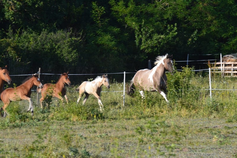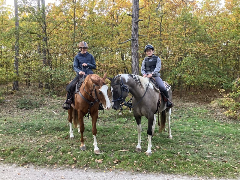 American paint horse mare born in 2019 - pregnant, sire of foal: Playboy Bugs Bunny, 7 panel n/n (due date 31.5.2026, last year's colt from the same connection can be seen with us) - has US certificate, horse passport and 7 panel test (is gbed carrier, all other has n/n including myhm/imm) - trained by a professional (Ondřej Houška, Ranch Oswego), started before her fourth year, then ridden by an experienced rider on trail rides, now is not being ridden due to her pregnancy - she is used to cars, trains, motorbikes etc., she doesnt spook, is rather active than lazy - great with all handling, veterinarians and farriers, is non-conflict in the herd, respects electric fence, is vaccinated, dewormed, trimmed and has teeth done regularly - is in good condition and well-fed - has no problem with transport, stands tied, leaves other horses, respects people, in short she is well-mannered - mare has an excellent pedigree (in pedigree RW Rocket Ranger, Josies Amigo Sunray, Spookernatural, Blue Eye Jane Valley, Emphasis), is suitable for breeding and is a good mother - strong, beautifully built mare, about 160 cm tall, a typical representative of the paint horse breed - she has rare color smoky grulla tobiano (carries both dun gene and cream gene) and is homozygous tobiano - she will always have spotted foal, even with a solid-colored stallion - located in Znojmo, Czech Republic