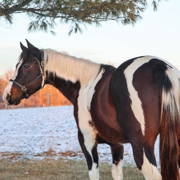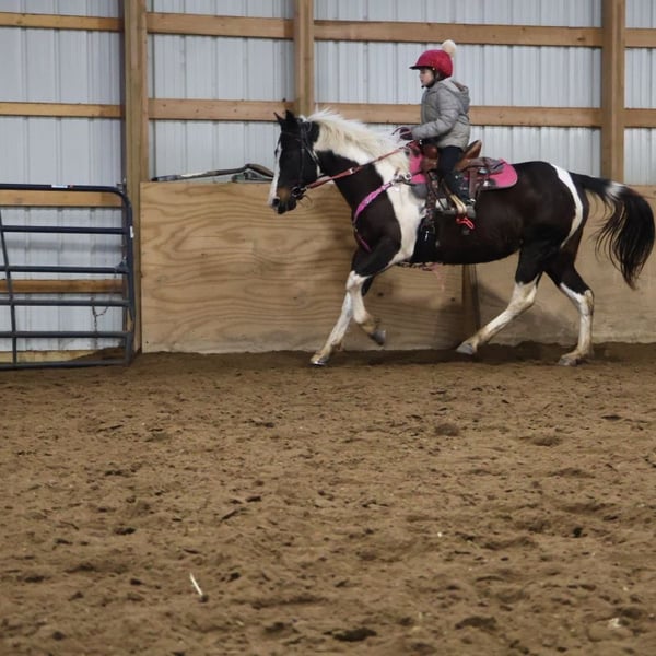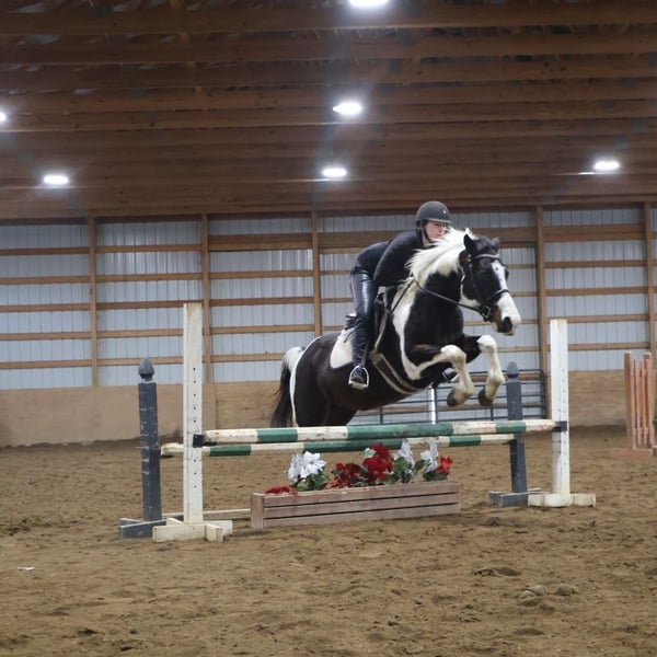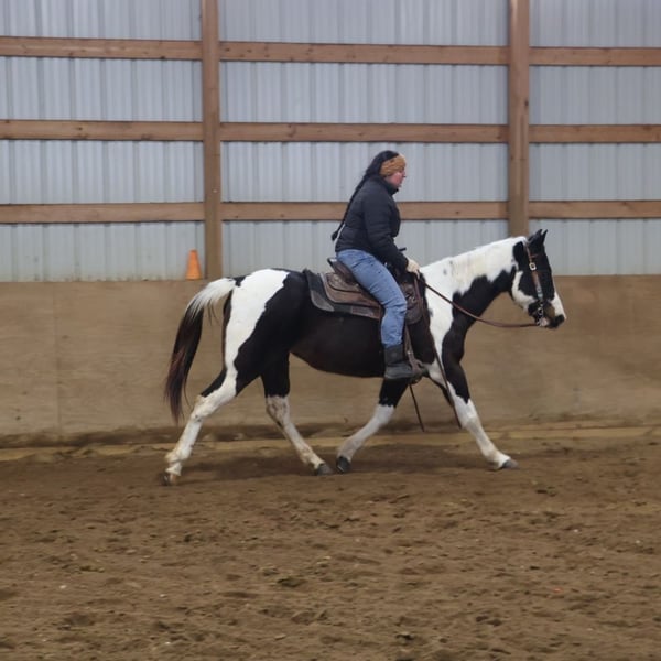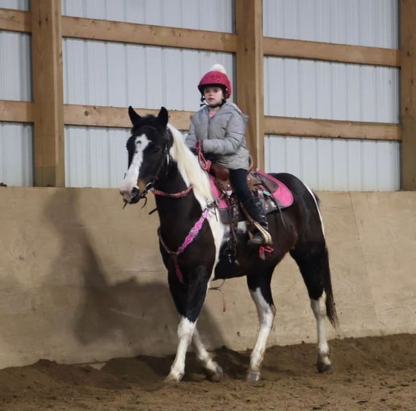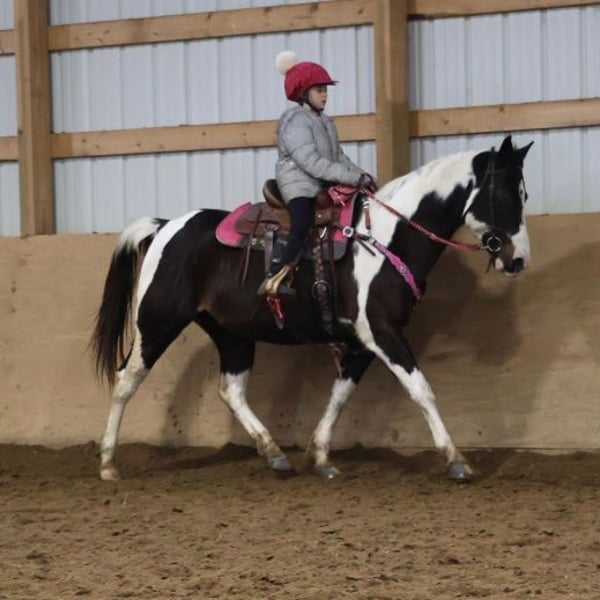 "AVAILABLE ON ONLINE HORSE AUCTION AT www DOT MagicHorseAuction DOT com BIDDING OPEN NOW thru TUESDAY | MARCH 3RD! BUY IT NOW AVAILABLE! *Final price will be determined on auction site* CONSIGNOR CONTACT INFO:ELLESSEE SCHWARTZ #248-390-6831 LOCATION:Howell, MI" We would like to introduce Sunshins Shastas Daisy or Sunshine as we call her at home. She is a registered 2018 (8 year old) APHA mare who stands a hair shy of 14.2hh. She is a beautifully put together tobiano. Sunshine has a delightful demeanor as she is a kind and loving horse who has been trained with all the bells and whistle's. Sunshine walk, trot, canters and knows her leads. Her transitions are effortless both upward and down. She both neck and direct reins. Sunshine has been used in 4/H and equestrian team and has competed in everything from trail to jumping to flags and poles. She is the type of horse who will teach you. She is easy to catch, load, haul, groom and tack. The most timid kiddos can do everything with her. Sunshine is happy to putz down a trail on a long rein and is not reactive of anything. She's also happy to jump around courses with beautiful flying changes. She is extremely versatile in her training and her ability. Kids as young as 6 and adults as old as 75 can ride and enjoy her and she will adjust to her rider. Sunshine has completed our full desensitization program and passed with flying colors. She even knows how to lay down on command! She's been trail ridden in the mountains of KY and the deep woods of Michigan. If you're looking for a true all around horse with stunning color, a good pedigree and loads of real world experience Sunshine is your girl! She lives in Howell MI 48855! Enjoy the video as we showcase several riders with a multitude of abilities. Call Ellesse 248-390-6831 for more information
