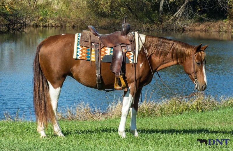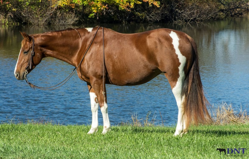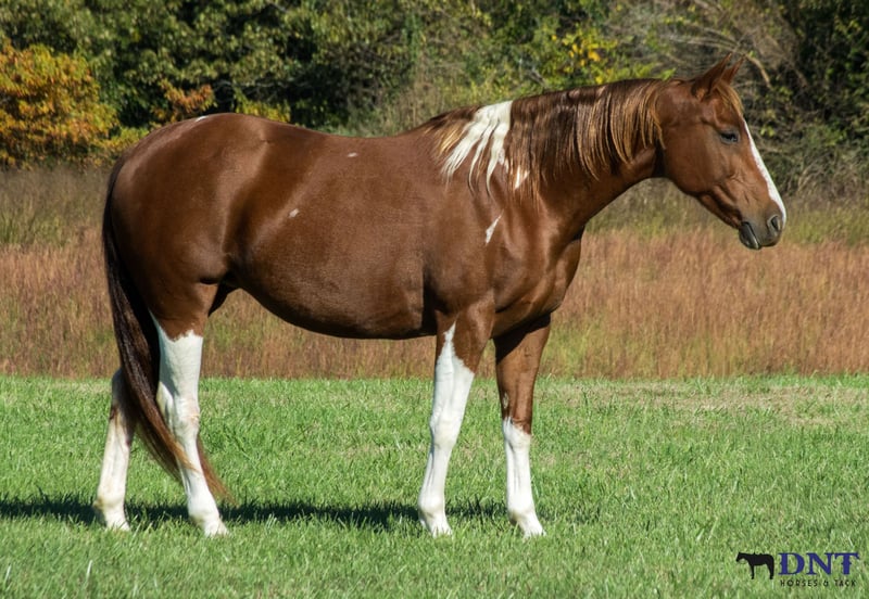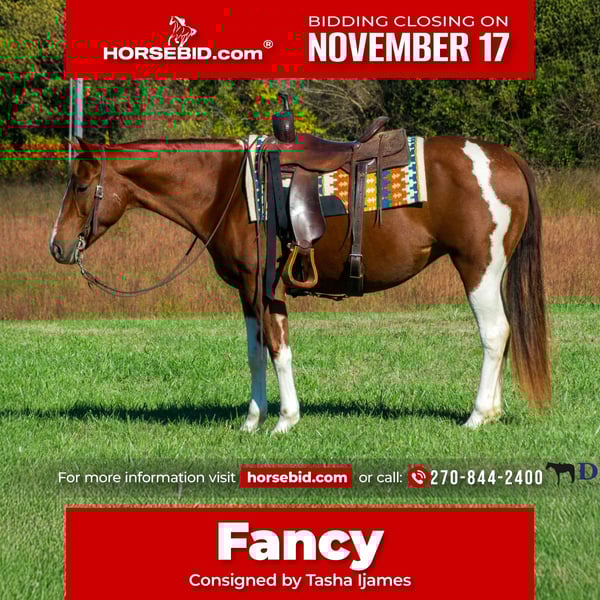 🎲𝓽𝓱𝓮 𝐑𝐈𝐃𝐄𝐑'𝐒 𝓒𝓱𝓸𝓲𝓬𝓮🎲 Happening now thru MONDAY | NOVEMBER 17th - Available EXCLUSIVELY on HorseBid's website! For more details and to register visit: www.Horsebid.com CONSIGNOR CONTACT: Tasha Ijames 270-844-2400 LOCATION: Henderson KY BREED: APHA REGISTERED: Yes REGISTERED NAME: Delta Olenas Shine COLOR: Chestnut and White Paint HEIGHT: 14.3 AGE: 7 GENDER: Mare Fancy APHA 2018 Delta Olenas Shine Fancy is a gorgeous 7 year old chestnut tobiano paint mare. Along with her cuteness, she is the perfect height standing at 14.3 hands tall and all the shape you could want. Fancy isn't just an eye catcher she is very well bred and goes back to the great cutting horse Doc O’Lena and is out of an own daughter of Shining Spark. She is very well broke and rides like one should. She will W/T/L, side pass and works off leg pressure. Fancy is absolutely broke for any level rider. She’s honest, gentle and safe. Fancy will walk all day if asked. She has a nice trot to her and transitions to a nice smooth lope. She neck reins with one hand, responsive to leg cues, backs and has a big stop when asked. You can ride her bareback with a halter or grass string if you want. Fancy will meet you at the gate wanting all the attention. She is out standing on the trails and has been trail ridden extensively through many different types of terrain. She is sure footed and honest. Fancy is not spooky and will cross creeks, go through any body type of water, thick brush, logs, bridges, rough terrain, up and down cliffs with ease. She has been rode on the road and is used to all kinds of traffic, heavy machinery and ATV’s. She is also dog safe. You can ride Fancy out alone with ease or with other horses. Fancy has also been used to sort and pen cattle at shows as well on the ranch. She will stand still for you to get on her from the ground or a mounting block. She stands to be groomed, fly spray, stands still to be saddled, takes the bridle with ease, bathes good, loads like a dream, clips great, and stands for the farrier. If you’re looking for that perfect horse for the family, please be sure to check her out. She’s looking for her forever home to please the whole family. We invite anyone and everyone to come meet and ride Fancy at our barn in Henderson, Kentucky. We are happy to assist with transportation arrangements. PPE are welcomed at buyers expense. For any questions about Fancy please contact Tasha 270-844-2400