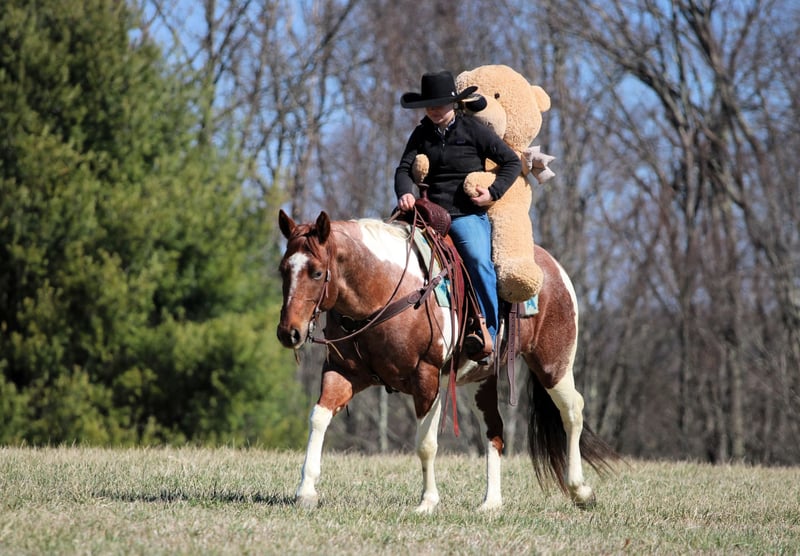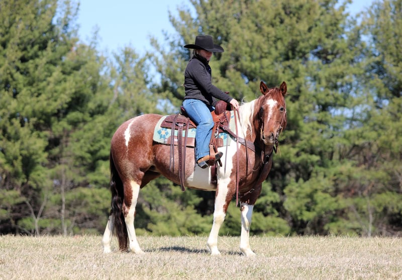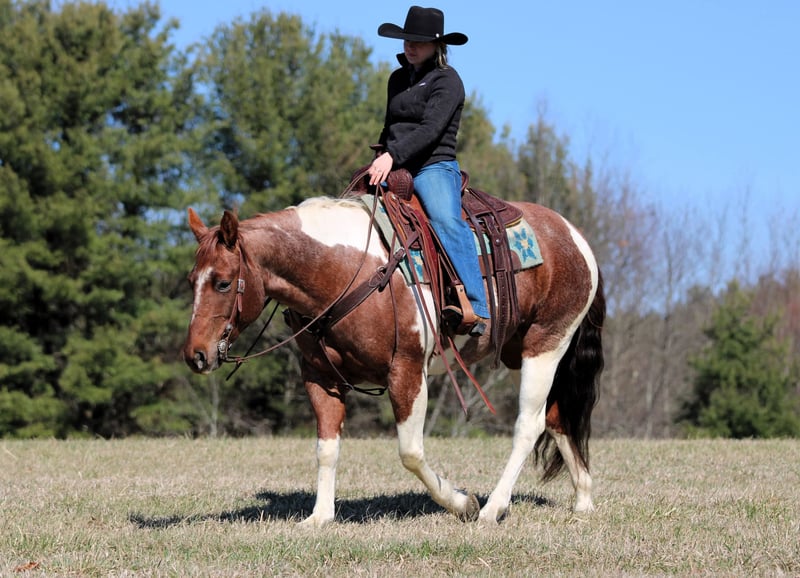 Lexie, 8 anni, 14,3 hh, cavalla Paint roano rosso e bianco