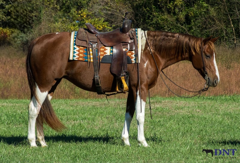 ⚜️ 𝓽𝓱𝓮 𝐇𝐨𝐫𝐬𝐞𝐦𝐚𝐧'𝐬 𝓢𝓱𝓸𝔀𝓬𝓪𝓼𝓮⚜️ Happening now thru MONDAY | DECEMBER 1st - Available EXCLUSIVELY on HorseBid's website! For more details and to register visit: www.Horsebid.com CONSIGNOR CONTACT: Tasha Ijames 270-844-2400 LOCATION: Henderson KY BREED: APHA REGISTERED: Yes REGISTERED NAME: Delta Olenas Shine COLOR: Chestnut and White Paint HEIGHT: 14.3 AGE: 7 GENDER: Mare Fancy APHA 2018 Delta Olenas Shine Fancy is a gorgeous 7 year old chestnut tobiano paint mare. Along with her cuteness, she is the perfect height standing at 14.3 hands tall and all the shape you could want. Fancy isn't just an eye catcher she is very well bred and goes back to the great cutting horse Doc O’Lena and is out of an own daughter of Shining Spark. She is very well broke and rides like one should. She will W/T/L, side pass and works off leg pressure. Fancy is absolutely broke for any level rider. She’s honest, gentle and safe. Fancy will walk all day if asked. She has a nice trot to her and transitions to a nice smooth lope. She neck reins with one hand, responsive to leg cues, backs and has a big stop when asked. You can ride her bareback with a halter or grass string if you want. Fancy will meet you at the gate wanting all the attention. She is out standing on the trails and has been trail ridden extensively through many different types of terrain. She is sure footed and honest. Fancy is not spooky and will cross creeks, go through any body type of water, thick brush, logs, bridges, rough terrain, up and down cliffs with ease. She has been rode on the road and is used to all kinds of traffic, heavy machinery and ATV’s. She is also dog safe. You can ride Fancy out alone with ease or with other horses. Fancy has also been used to sort and pen cattle at shows as well on the ranch. She will stand still for you to get on her from the ground or a mounting block. She stands to be groomed, fly spray, stands still to be saddled, takes the bridle with ease, bathes good, loads like a dream, clips great, and stands for the farrier. If you’re looking for that perfect horse for the family, please be sure to check her out. She’s looking for her forever home to please the whole family. We invite anyone and everyone to come meet and ride Fancy at our barn in Henderson, Kentucky. We are happy to assist with transportation arrangements. PPE are welcomed at buyers expense. For any questions about Fancy please contact Tasha 270-844-2400