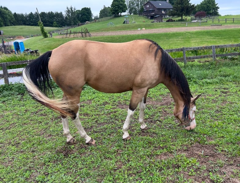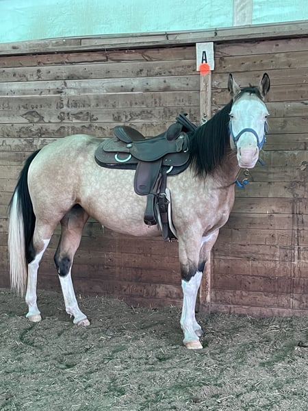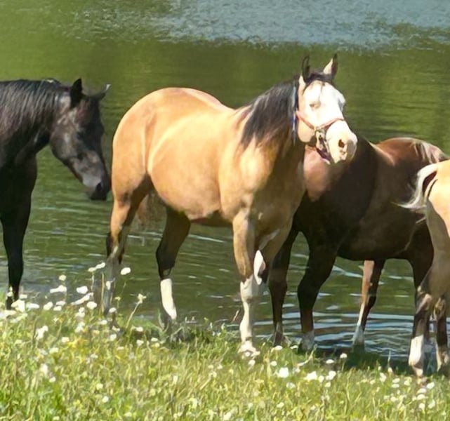 Skye- SL GUNNERS GOLD LYNX Beautiful 7 year old AQHA & APHA mare. Sire: Boggies Gold Gun Dam: Saqpeponita Twist San (APHA papers attached) 15.3 HH. Quiet and well broke. Awesome ride! Smooth gaited. Good on the trail. Super Ranch Riding horse. Show ready for Western Pleasure! Some schooling in reining basics . Will go English. Trailers well. Skye is a very versatile horse who is eager to please. Has been bred & produced two healthy, gorgeous, & colourful foals. Has had X-rays within the past 1.5 years and had a clean report. Located in Dundas, Ontario $28,000 CANADIAN