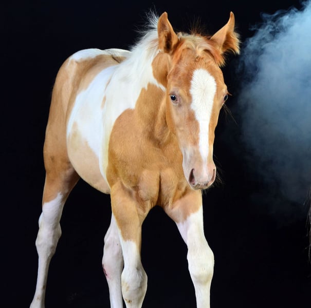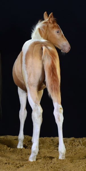 Babatte ist ein Paint Horse Stutfohlen in Gold Champagne, reinerbig für das Champagne Gen. Sie wurde auf der PHCG Zuchtshow vorgestellt, und erhielt die geniale Gesammtnote von 7,95. Sie ist 7 Panel N/N ud hat natürlich volle Paint Papiere. Sie wächst artgerecht in einer grossen Herde auf. Ihr Charakter ist aus Gold, und sie will immer gefallen. Gekuschelt werden und sucht die Nähe des Menschen auf immer sanfte weise.