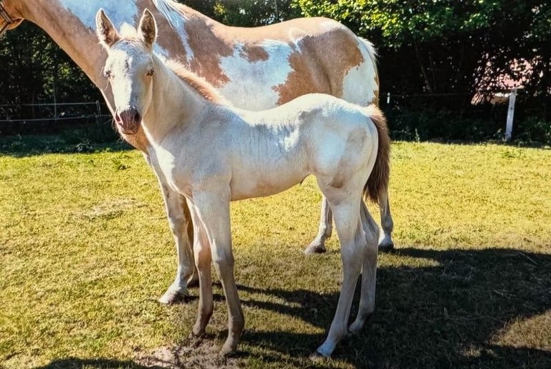 …e sto cercando il mio prossimo compagno speciale! Sono nato il 22 aprile 2025 e da allora esploro il mondo con curiosità e apertura. Il mio colore è smokey cream e sono registrato presso l'APHA e il PHCG. Sono molto socievole, affettuoso con le persone, gestibile al cavalletto e educato dal maniscalco. Il traino non è un problema per me. Naturalmente sono dotato di microchip, sono vaccinato e dewormed. Alla mostra di stalloni a Brema/Ritterhude sono stato il puledro vincitore con un punteggio di 8,15. Questo mi ha qualificato per il Campionato Nazionale dei Puledri a Darmstadt, dove ho ottenuto il 7° posto. Se vuoi conoscermi, contatta subito il mio proprietario Frank Heldt al numero 0176-34507184.