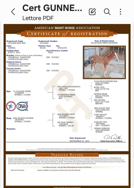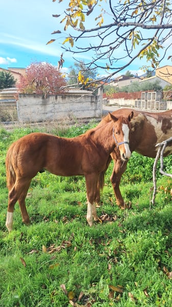 Vendo splendido American Paint Horse stallone, nato nel 2025. Questo giovane cavallo si distingue per il suo splendido sauro scuro, che lo rende unico e molto elegante. Con un'altezza al garrese di circa 130 cm, è ideale per chi desidera un compagno versatile e di carattere. Specializzato in reining, dimostra grande talento e potenzialità in questa disciplina. Perfetto per cavalieri che cercano un cavallo promettente e dal carattere equilibrato. Per ulteriori informazioni, non esitate a contattarmi!