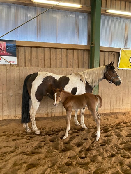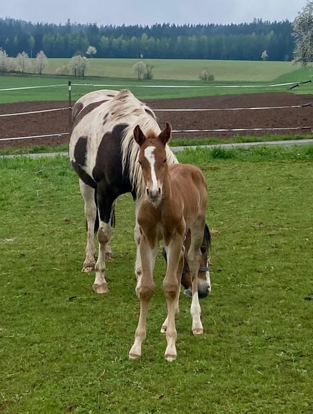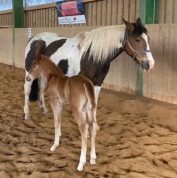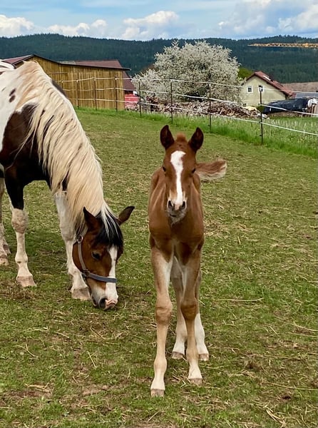 Ein neuer kleiner Held kam am 17.04.2025 zur Welt! Mit seinem ersten Atemzug hat dieser junge Hengst sofort für leuchtende Augen gesorgt. Er begegnet allem mit kindlicher Neugier, einem offenen Herzen und einer natürlichen Ruhe, die einfach berührt. Sein sanfter Blick, sein mutiges Auftreten und seine verspielte Art machen ihn schon jetzt zu einem ganz besonderen Begleiter! Er wird voraussichtlich ein handliches Endmaß von ca. 148 cm erreichen – perfekt für Sport und Freizeit! Er ist kräftig gebaut, mit geraden, stabilen Beinen und harmonischen Proportionen – ein echter Hingucker mit viel Potenzial. Er ist kerngesund, genetisch 5-Panel n/n getestet und kennt bei Abgabe bereits den Tierarzt und den Hufschmied. Natürlich wird er regelmäßig entwurmt und altersgerecht geimpft. Er wächst liebevoll im Herdenverband mit Gleichaltrigen auf und zeigt sich dort neugierig, menschenbezogen und verschmust. Der Kleine ist sehr brav im Umgang, lässt sich problemlos händeln und bewegt sich locker und elegant – ein echtes Naturtalent! Dank seiner hervorragenden Reining-Abstammung bringt er beste Voraussetzungen für den Turniersport mit, ist aber genauso ein Schatz für den Freizeitreiter. Sein Papa ist kein Geringerer als der erfolgreiche Lil Dunit Smart (LTE NRHA USA 33.560 $, NRHA Germany 10.180 €), ein Sohn des bekannten Lil Peppy Dunit Right. Er wird mit vollständigen Papieren und Equidenpass abgegeben – bereit, die Herzen seiner neuen Menschen im Sturm zu erobern. Er sucht noch sein⭐️⭐️⭐️⭐️⭐️-Zuhause! Bei Interesse gerne melden!