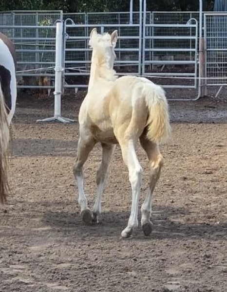 Dieser Perlino Tobiano Hengst führt bestes amerikanisches Blut in sich. Mütterlicherseits ist Tru Rolex als erfolgreichsten Paint zu finden, er ist mehrfacher World Champion und bekannt als der erfolgreichste Paint Horse Hengst in der Geschichte der APHA - Halter und Performance- Klassen. Docs Magic Big Step ist High Point Horse und Deutscher Meister im Working Cowhorse. Dieser direkte Sohn von Big King Kurt Step und Docs Red Pride führt bestes klassisches Cowhorse/ Reining Blut in sich. Die " King Step" Linie ist bekannt für kräftigen Körperbau, gute Knochen und einen ruhigen zuverlässigen Charakter. Die "Doc's" Linie steht für wendige, intelligente, lernbereite Pferde mit echtem Cow Sense. Väterlicherseits kommt ebenfalls nochmal bestes amerikanisches Blut dazu mit Tru Passion Buck: APHA Champion & APHA Reserve World Champion Junior Heeling, mehrere Superiors, ROM's in Disziplinen wie Heading, Heeling und Reining, er steht für ein ruhiges Temperament und Leistungsbereitschaft. Direkter Vater ist unser selbstgezoger, mit Prämie gekörten Painthorsehengst TRUS PAINTED OLENA- er ist erfolgreich im Ropingsport ( was sicherlich in seinen Genen verankert ist:)), er geht aber auch gern ins Gelände. Tru steht bei uns mit den Zuchtstuten und seinen mit Prämie ausgezeichneten Nachwuchs im Herdenverband. Sein Vater ist der aus den USA stammende TRU DOCSCHEROKEE aus der Erfolgszucht von Joni Voloshin Performance Horse. Vater und Opa sind tolle Allroundpferde. Das besondere an seiner Genetik: er ist doppelter Farbvererber! ✓ homocygot für sein Tobianogen, d.h. er vererbt 100% Schecken ( Tobiano) sowie ✓ gibt er zu 100% sein Cremegen weiter für Farben wie Buckskin, Palomino und Smoky Black. Er wurde dieses Jahr Präminenfohlen.