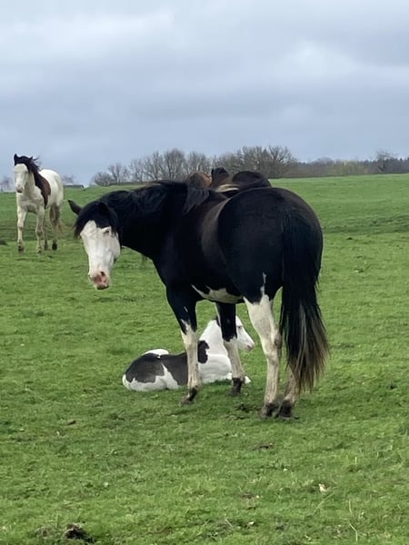 POKER SPHASHY GUN idealny źrebak na karierę hodowlaną, cenne geny (ojciec z linii Colonels Smoking Gun, importowany z Kanady, brak produktów we Francji/Europie), Poker to wspaniały ogierek z pełnymi papierami APHA Paint horse, duży i bardzo muskularny, przyszły ogier, syn Loversea i Smoke, prawdziwa bomba w morfologii i mentalności, naprawdę wyjątkowy źrebak, ultra szanujący, opanowany i spokojny, który będzie wysoki jak na swoją rasę, klejnot, którego nie można przegapić!!! Urodzony 25 marca 2025 roku, będzie dostępny na początku listopada! Ee aa SW1/SW1 DW20/n LWO/n, 6 paneli negatywnych. Klacz, ogier i drzewo genealogiczne na ostatnich 3 zdjęciach. ZNAJDUJE SIĘ WE FRANCJI 🇫🇷 (sexcles 19430)
