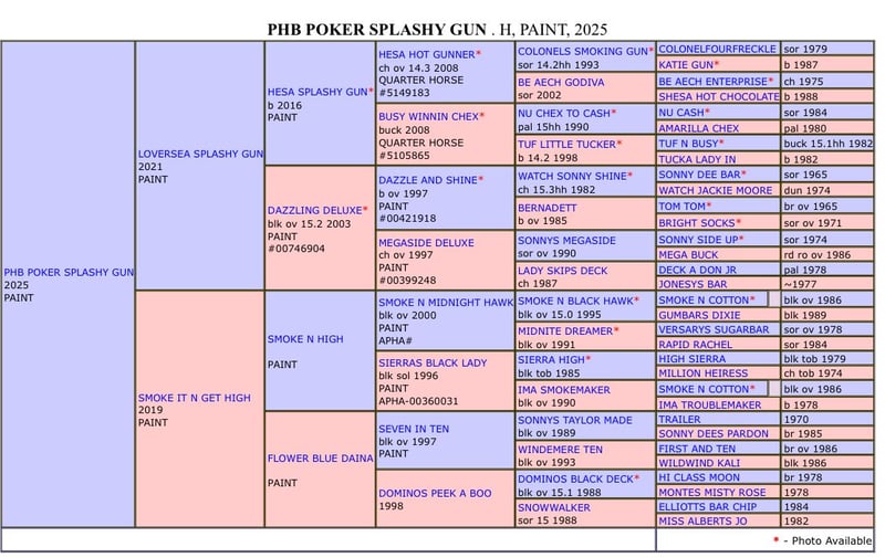 POKER SPHASHY GUN perfect foal for a breeding career, precious genetics (father from Colonels Smoking Gun Line, imported from Canada, no products yet in France/Europe), Poker is a magnificent colt with full APHA Paint horse papers, large and very muscular, future stallion, son of Loversea and Smoke, a real tanky bomb in morphology and mentality, a really top foal, ultra respectful, cool-headed and calm, who will be tall for his breed, a jewel not to be missed!!! . Born on March 25, 2025, he will be available at the beginning of November! Ee aa SW1/SW1 DW20/n LWO/n, 6 panels negative . Mare, Sire and pedigree in last 3 pictures. LOCATED IN FRANCE 🇫🇷 (sexcles 19430)