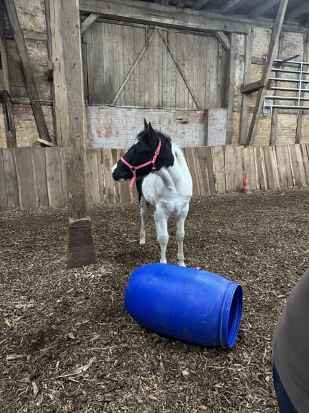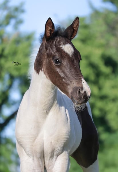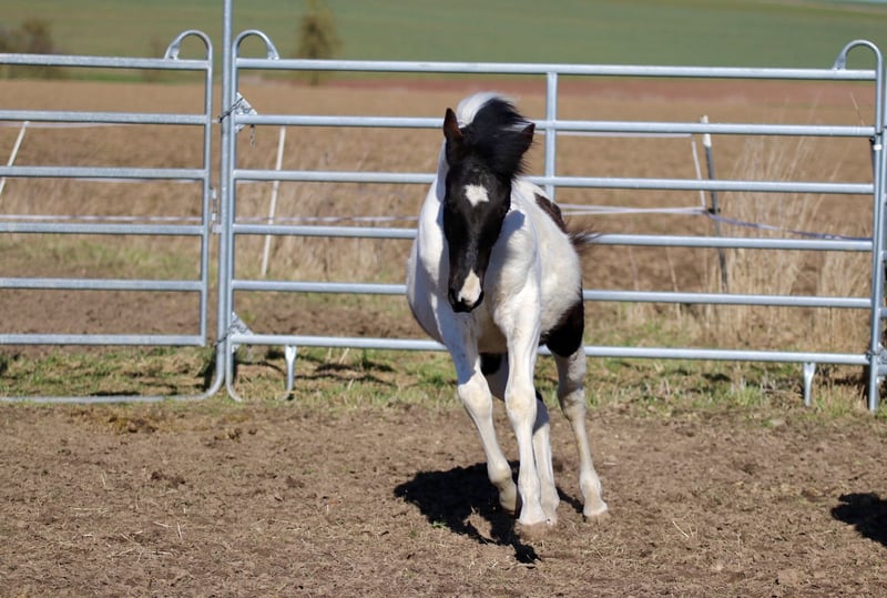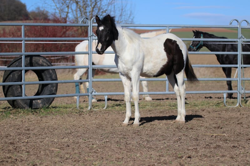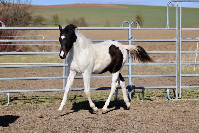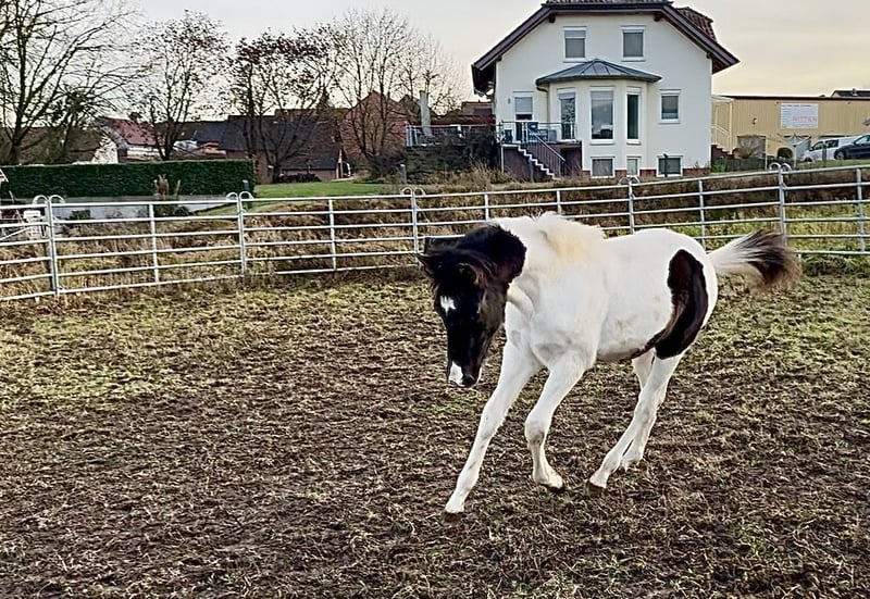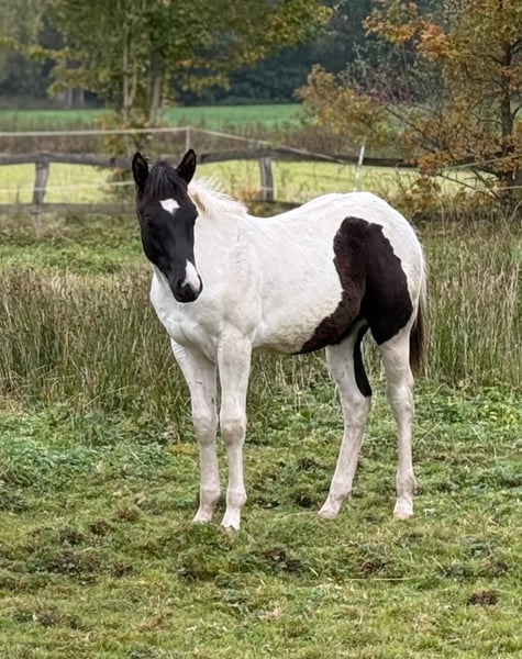 Raven ist ein verschmustes, braves Hengstfohlen. Er kennt bereits das Fohlen ABC und lernt dabei sehr schnell. Er könnte Homozygot für Black und Tobiano sein, wurde noch nicht getestet. Anhänger fahren, kennt er auch bereits. Rasse: Paint Horse ( APHA Papier und E-Pass vom PHCG ) Vater: Rocky Mountain Music Mutter: Cheyennes Candy Cane Geboren am 25.04.2025 Farbe: Black Tobiano Endmaß geschätzt: 155cm 5 Panel N/N, MYH1 N/N, OLWS N/N Ich wünsche mir für Raven ein Traumzuhause wo er bleiben darf,in artgerechter Aufzucht. Am liebsten in Offenstallhaltung. Platz vor Preis!