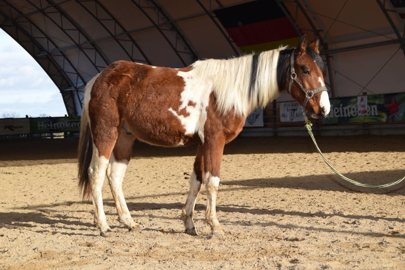 "Joey" ist ein liebevoller Hengst, welcher durch seine ruhige und ausgeglichene Art überzeugt. Seit Anfang des Jahres besteht der Verdacht auf eine Ataxie laut Tierarzt und Osteopathen. Vermutlich durch eine Stenose des 7 HWS. Test auf Stoffwechselerkrankungen waren negativ. Blutbild gemacht. Diagnose nur klinisch möglich. Gerne weiteres per PN. Er kommt im Alltag gut zurecht, keine Schmerzmittel erforderlich. Man sieht es in seiner Bewegung und beim Gleichgewicht halten, deshalb fällt ihn Hufe geben etwas schwer aber er ist immer bemüht und zeigt keine Unarten. Er hat Spaß an Bodenarbeit. Im Sommer war er 24/7 auf Koppel mit 2 weiteren Junghengsten. Kennt Offenstall und Boxenhaltung. Aus diesem Grund wird er als reiner Beisteller und zukünftig nicht reitbar verkauft!