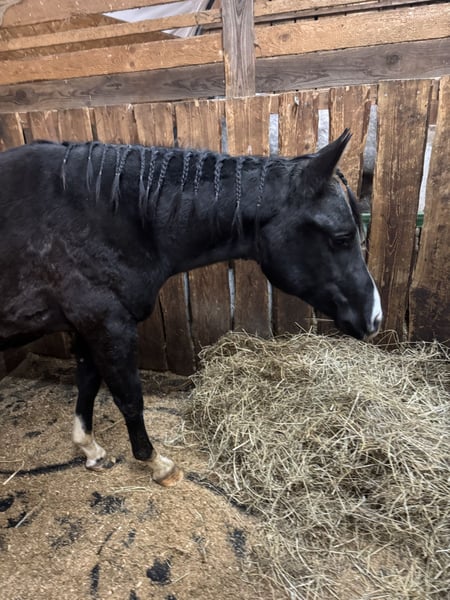 Geb: 04/24 PHV STYLE HARRY POTTER DAM: MISS CLASSIC STYLE FA (Impressive, Cash, Commander) SIRE: ROYAL WASH COOKIE Vor kurzem war die Pferdewaage da. Aktuell ist er ca 1,50m groß und 400kg schwer. Geschätztes Endmaß ca 1,58m-1,60m. Die Eltern waren beide auch so groß. Harry kennt alles, was ein Pferd in dem Alter kennen kann. Er kennt Spaziergänge, täglichen Koppelgang, Hufe geben, Schmied, putzen und wächst mit einem schweren Warlmbluthengst gemeinsam auf. Verladetraining würde ich zeitnah starten, aber er lernt sehr schnell und hatte noch nie schlechter Erfahrungen mit dem Hänger gemacht. Also sollte das kein Problem sein. Er zeigt noch keinerlei Hengst-Anzeichen gegenüber anderen Pferden. Er wird täglich an- und abgehalftert und zur Koppl geführt und wieder geholt. Somit kommt er täglich in Berührung mit Menschen. Er ist sehr sensibel im Umgang und lässt sich überall anfassen. Anbinden, putzen und Mähne einflechten ist alles kein Problem. Traktor, Hunde und die täglichen Stallgeräusche machen ihm keine Panik. Auch zu Silvester war er super entspannt. Ansonsten zeigt er auf der Koppel viel GO, wenn er umher rennt. Videos und weitere (vorallem tagesaktuelle) Bilder können auf Anfrage gerne gesendet werden. Er würde bis zum Frühjahr noch Hengst bleiben, danach wäre hier nur noch eine Haltung als Wallach möglich. Also falls jemand Interesse an ihm als Hengst hat, gerne vorher melden. Der Preis kann gerne persönlich besprochen werden, ist nur eine grobe Einschätzung meinerseits, im Endeffekt wäre hier Platz vor Preis zutreffender. Es handelt sich nicht um einen Notverkauf. Fotos beider Elternteile sind mit dabei. Er hat volles APHA Papier, Gentest 6 Panel n/n liegt vor. Besichtigungen sind jederzeit möglich. Meldet euch einfach. :)