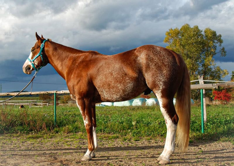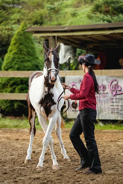 * 5. 5. 2024 APH Sorrel tovero colt (rabicano) 7 panel negatives This one will be absolutly perfect as your next show horse. Lovely mind, very clever and absolutly perfect posture with streight legs. He will be tall, so perfect choice for HUS, all around etc. His pedigree is full of high sound names. He is vaccinated for F, T, EHV, regularly trimming and devorming. He knows box, transport, loves water and grooming. He started in showmanship and in-hand trail on his first show. Very easy to load, not lunging (I started on lunge, when horses are older) Last photos dam (15,1 hh) and sire (16,1 hh). APHA certificate done and equine passport too. We can organizate the transport.