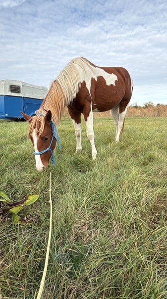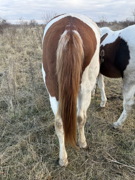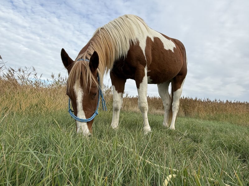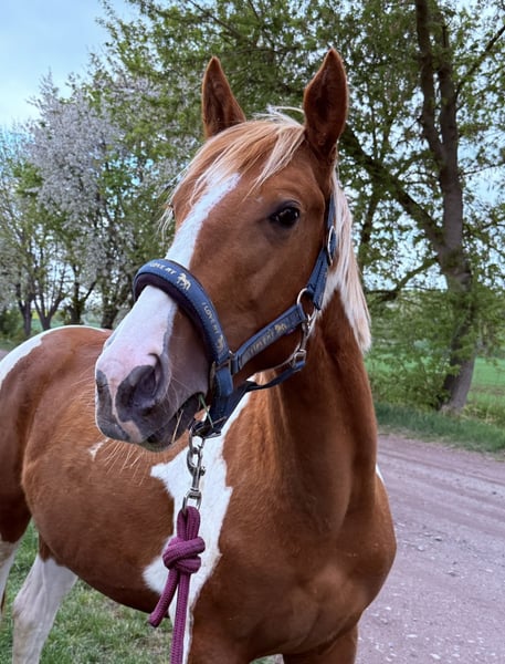 Verkaufe diesen wunderschönen Charakterstarken 2,5 jährigen Hengst mit viel Potenzial , welcher ein förderndes Zuhause für immer sucht. Er ist am 27.05.2023 geboren und überzeugt durch sein beeindruckendes Tobiano-Farbmuster in allen Farben, das sofort ins Auge fällt. Dieser junge Hengst begeistert jeden durch sein freundliches Wesen und ist gegenüber seiner Bezugsperson sehr anhänglich. Er hat zurzeit ein Stockmaß von ca 1,50m und bringt APHA Papiere und den PHCG Pass mit. Durch seine Eltern hat er Reining, Allround- sowie Cowhorse - Gene und zeigt viel Potenzial für die weitere Ausbildung und wird sich später wohl gut für Reiter, die ein zuverlässiges und charmantes Pferd für Freizeit oder auch im Westernbereich suchen eignen. Im Cowhorse Bereich zeigt er schon spielerisches Interesse. Seine robuste Konstitution und sein angenehmer Charakter machen ihn je nach Ausbildung zu einem treuen Begleiter für spätere Ausritte und entspannte Stunden im Gelände, Spaziergänge und machen ihn später somit zu einem idealen Begleiter für Reiter aller Erfahrungsstufen. Er ist Kerngesund , freundlich im Umgang, sehr gut sozialisiert, kennt das Fohlen ABC, ist geimpft und entwurmt, geht ohne Probleme in den Hänger (auch ohne Trensung) rein, kennt bereits Fellsattel, leichte Gewichte, Hunde, Katzen und Landmaschinen und zeigt dabei seinen ruhigen und ausgeglichenen Charakter. Ebenfalls kennt er Stall und Koppelhaltung. Mit seiner Mutter stand er auf der Koppel immer in einer gemischten Herde und hat sich dort unauffällig gezeigt. Zurzeit steht er mit seinem jüngeren Hengstkumpel (1,5 Jahre) zusammen, mit welchem er sich sehr gut versteht. - welcher zur Abgabe ebenfalls bereit steht. Es wäre auch ein Verkauf beider Junghengste sehr gerne zusammen möglich. Beide Hengste zeigen keine Unarten. Die letzten Bilder zeigen ihn als Fohlen mit seiner Mutter Er kann natürlich gern besichtigt werden . Weitere Bilder und Videos könnt Ihr auf Anfrage gerne erhalten.