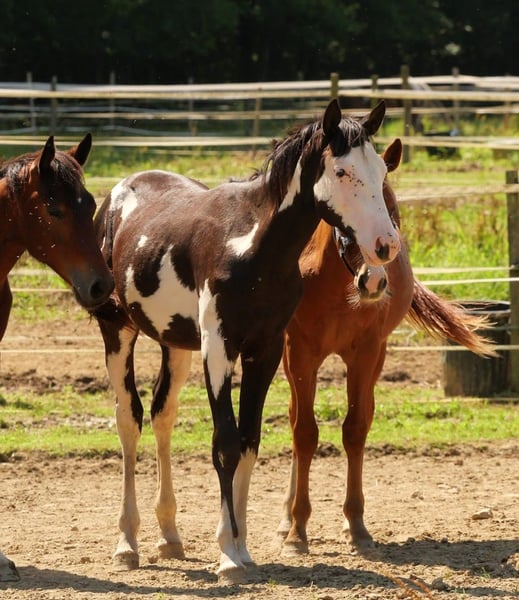 Namber Peppy Cat: 2-year-old Paint Horse colt, Frame Ovéro/Black PP, sire and US origin Panel negative for lineage and LWO/n, due to Frame Ovéro bloodline. Sire: Paint Horse, born 2014, Spat NC Star Olena, Black & White Ovéro, 1.55 m, PP USA and sire. Dam: Paint Horse, Haize Amber, born 2017, Sorrel, 1.57 m, PP USA and sire. Both sire and dam are visible at the breeding farm. This is a gentle colt, easy to handle, with a calm and composed temperament, very human-oriented. He is expected to grow to approximately 1.55/1.58 m, with beautiful, flexible, and airy gaits. We see him as suitable for recreational riding or competition, as well as for breeding. He could develop into a prospect for Reining, Western Riding, Mountain Trail, All-Around, or cattle work such as Team Penning and Ranch Sorting. We anticipate him inheriting the qualities of his sire, who is both an excellent riding horse and a high-quality breeding stallion. His dam is a very versatile all-around riding mare, suitable for cattle work and outdoor activities, now dedicated to breeding. He has been handled gently since birth using a soft approach. His training is carried out by a professional. His education follows "Horsemanship" methods. Currently in pre-breeding groundwork, he shows very good potential. Breaking is planned for late 2025. Preferably contact by phone (leave a message). Photos and videos available.