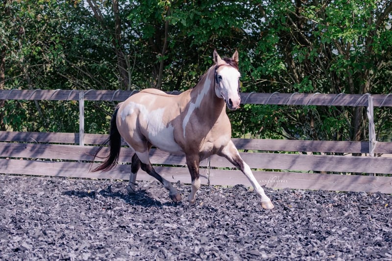 *Dunskin Overo Paint Horse Deckhengst* Ab April 2026 im Frischsamenversand EU-Weit für alle Rassen verfügbar: Streetwalker SBH ist ein wunderschöner, kräftiger und kompakter Paint Horse Deckhengst der ab April erstmals über Triple J Stables EU-Weit im Frischsamenversand verfügbar ist. Ende Februar zieht er bereits zur Vorbereitung auf die Station, die Saison beginnt 😍 Streetwalker SBH übertrifft die Coolness bei Weitem, nicht nur er, sondern auch seine bisherigen Nachzuchten überzeugen in ganzer Linie. Sein Großvater ist kein geringerer als der World Champion Reiner Luckys TE N TE. Und aus der Ethels Ivory Star gezogen bringt Streetwalker nicht nur den ruhigen Leo und herdenverträglichen Cow Horse Hengst King mit, sondern auch das kräftige vielseitigen Ranchhorse Hancock findet man in seinen Ahnen. Das macht Streetwalker SBH zu einem echten Allrounder und er ist so entspannt und cool, dass er im im Offenstall im Herdenverband mit seinen Stuten lebt. Durch seine seltene Farbgenetik hat er bisher nur Sonderfarben an seine Fohlen vererbt und lässt keine Wünsche offen. Er ist ein Dunskin Overo und kann daher sein Creme Gen, sein Dun Gen, seine Overo-Scheckung oder sein W20 Gen vererben. Zudem ist der Homozygot Black (EE), sodass er keine Füchse machen kann. Je nach Farbgenetik der Stute kann er also Bay, Black, Buckskin, Dunskin, Bay Dun, Smoky Black, Smoky Grullo oder Grullo machen und alles mit seiner schönen Overo Scheckung möglich. Zudem trägt er das W20-Gen welches schöne weiße Abzeichen bringt oder eine Scheckung boostert. Er ist kräftig im Körperbau, hat starke Knochen, gesunde Hufe, ein schönes Köpfchen und zeigt sich auch unterm Sattel, ob im Training oder Kinderreitunterricht vielseitig und unterschrocken. Hier nochmal die Eckdaten im Überblick: Genetik: EE Aa Cr/N D/nd2 OLWS/N W20/N 7 Panel N/N inkl. IMM/MYHM + EJSCA frei! Größe: 1,46 - deckt gut ab und vererbt auch Größe! Decktaxe: 680 im Splitting-System Das heißt 340 Anzahlung bei Vertragsabschluss und die restlichen 340 wird erst fällig wenn die Stute tragend ist! Er ist im APHA registriert und im ZSSE gekört und somit für alle Rassen verfügbar. Bei Interesse oder Fragen, gerne schreiben. Wir freuen uns auf eure Stuten!