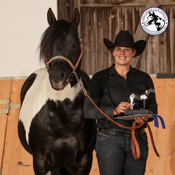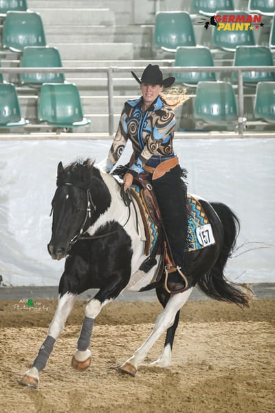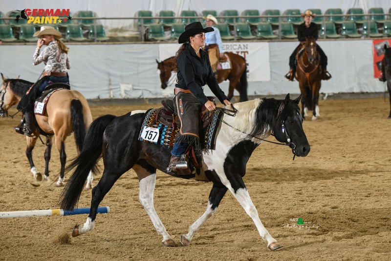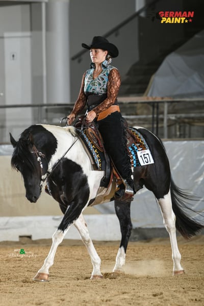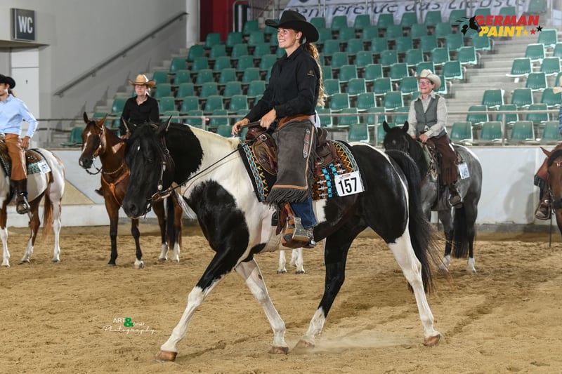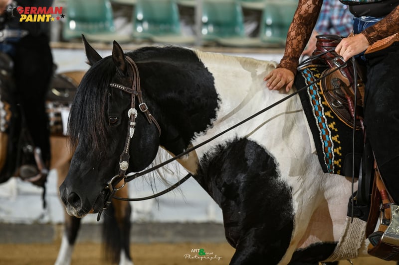 Jetzt schon an die Decksaison 2026 denken Frühbucherrabatt sichern bei Buchung bis 31.12.2025 ! Gekört und Leistungsgeprüft *PHCG Körsieger 2023 *Leistungsprüfung bestanden 2024 PHCG Hengstbuch 1 *Foundation gezogen *7 panel n/n *Gendefektfrei *HERDA, PSSM, GBED, LWO, IMM/MYH1, MYH, HYPP n/n *1,54 groß *reinerbig schwarz *81,35 Foundationblut German Paint 2025: 3x Top 10 Apaches Smarty Spots überzeugt nicht nur mit seinem tollen Charakter sondern ist er auch korrekt gebaut, hat einen im alten Typ stehend kräftigen Körperbau, kräftige Beine sowie große Hufe. Er ist einfach im Handling, easy zu reiten und macht so ziemlich alles mit. TG Samen über Triple J Stables verfügbar Natursprung möglich Standort bei Aschaffenburg, 63768
