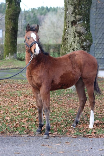 FHB O LENA TOP GUN Bay Solid APHA Hengst Geboren: 30.04.2025 Endgrösse ca 152 cm