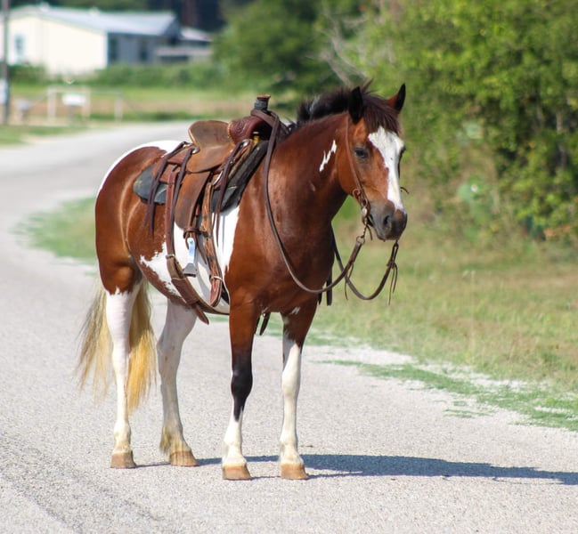 ONLINE AUCTION Place your bids at www.PlatinumEquineAuction.com Starting Bid $3500 Auction ends August 25th, 2024 Need a new saddle? Check out White Rock Saddles on our website or Facebook! Let me introduce to you the cutest little brokest pony around ! Everyone meet Cake Pop she is a 8 year old paint pony mare standing 12 hds tall and as wide as she is tall . She spent most of her life being rode by Amish kids she has done and seen it all . They used Cake Pop to ride to school on and all over the farm . Shes the perfect age for your kids to grow up with and will last them a lifetime . She has been rode all over the ranch checking cattle , penning back cattle at the sale barn and knows what a long days work is . She will walk , trot and lope circles . Cake Pop is one of the broker ponys around and will ride like a big horse , she is cowy and loves to work cows. She has been on many trails from the Famous Fort Worth Stockyards to the National Parks . She has been trail rode in many states including Missouri ,Texas , Arkansas and Oklahoma. She will cross water, bridges, tarps, brush, she’s seen many wildlife, been rode in crowds of people and heavy traffic and doesn’t bat an eye. Shes a confident and brave pony. Shes the pony your kids can ride around bareback all day long, she stands to tack up, for mounting with no issues at all . She loads and unloads , stands for the farrier and is currently barefoot . Cake Pop is an easy keeper also . Shes a super sweet little mare that won’t disappoint. Contact us to come try her , or we can set up a FaceTime also. If you need help with transport don’t hesitate to ask we have a list of reputable haulers that can get her safely to your doorstep world wide. Call M$ Performance Horses Michelle 661-817-9120 Located in Stephenville, TX. ONLINE AUCTION Place your bids at www.PlatinumEquineAuction.com Starting Bid $3500 Auction ends August 25th, 2024 Need a new saddle? Check out White Rock Saddles on our website or Facebook!