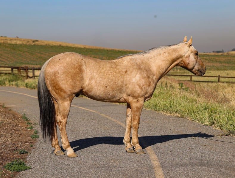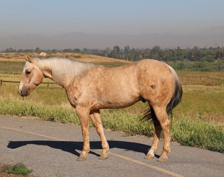 Lotta Shine Spark, gelding palomino AQHA di 10 anni, altezza 14.2 hh