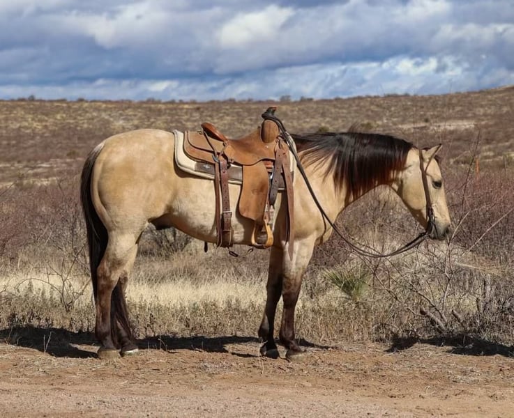 ONLINE AUCTION Place your bids at www.PlatinumEquineAuction.com Starting Bid $3500 Auction ends March 23rd, 2025 Need a new saddle? Check out White Rock Saddles on our website or Facebook! If you’re looking for an absolute gentleman in every possible way, then look no further!!! Charlie is a 9 year old grade gelding standing 14.3hh. This gorgeous gelding is well mannered, gentle, safe, good minded, and BROKE! Whether you’re seeking a surefooted gelding to take you on your next adventures on the trail, or an absolute dream to ride in the arena, Charlie is your guy!! Charlie will walk, trot and lope both ways on a draped rein with ease, has a fancy neck rein, great stop, and a flawless sidepass. You can even ride him bridless and bareback!! This gelding isn’t just fancy broke in the arena, but magnificent on the trail as well!! Charlie will go absolutely any direction you point him with zero spook and never in a rush. Flowing waters, fallen logs, thick brush, up and down steep terrain, rough rocky country, you name it and Charlie will go through it without batting an eye!! Charlie would suit absolutely any level rider from beginner to experienced, from 5 years old to 85 years old. This once in a lifetime gelding would excel in any direction you decide to take him!!Charlie is easy to catch and good to groom, saddle, bridle, bathe, clip, shoe, and load! Will come with a clean coggins and health! Transport can easily be arranged anywhere in the US!!! Located in Camp Verde, AZ. D/C Equine Services Dallas 804-822-2233 or Natasha 928-460-2625. ONLINE AUCTION Place your bids at www.PlatinumEquineAuction.com Starting Bid $3500 Auction ends March 23rd, 2025 Need a new saddle? Check out White Rock Saddles on our website or Facebook!