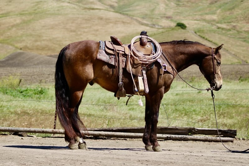 "AVAILABLE ON ONLINE HORSE AUCTION AT www DOT PlatinumEquineAuction DOT com BIDDING OPEN NOW thru SUNDAY | APRIL 19TH! *Final price will be determined on auction site* CONSIGNOR CONTACT INFO: Longhorn Ranch 831-537-1915 LOCATION: Paicines, CA CLYDE 10-Year-Old Buckskin Gelding • 14.3 Hands Good horses don’t need a lot of explaining—and Clyde is one of them. Clyde is a striking 10-year-old dark sooty buckskin standing 14.3 hands, with rich color, dark points, and a kind, steady expression that makes you feel comfortable right from the start. He’s the kind that doesn’t need any fuss—you get on him and he just makes sense. This gelding is the definition of handy and dependable—the kind everyone’s hoping to find and the kind that’s hard to replace. Clyde has been enjoyed on the trails, used for light ranch work with cows, and ridden in all kinds of country. He’s steady, relaxed, and carries himself with a quiet confidence that makes every ride easy. The kind you saddle up without a second thought… and end up riding longer than you planned. Obstacles? He’s been there, done that… and doesn’t see what all the fuss is about. Tires, logs, tarps, and anything else you want to point him at—he handles it with a level head and a willing attitude. Out on the trail, Clyde is sure-footed and happy to go wherever you point him. Rocks, hills, water crossings, wildlife—he stays honest and relaxed through it all. Whether you’re riding down the road or out in the hills, he treats it like just another easy day. He’s got a solid stop, a smooth, comfortable lope, and is coming along nicely in his turnaround with light cues. He’ll head out alone without issue and stays the same dependable partner every time. In the arena or around cows, Clyde is soft, responsive, and uncomplicated. He rides with a forgiving feel that works for a wide range of riders. And his personality is just as good as his ride. Clyde is gentle, kind-minded, and easy to be around. Easy to catch, easy to tack, and easy to enjoy. He loads, hauls, ties, and handles everyday life like he’s done it forever. No drama, no attitude, no nonsense—just a really good gelding that makes life simple… which is getting harder to find these days. Dark buckskin with eye-catching presence Gentle, steady, and easy to ride The kind that quietly becomes everyone’s favorite If you’ve been looking for a dark buckskin gelding that’s as dependable as he is good-looking, Clyde is worth a serious look. Longhorn Ranch Dina • 831-537-1915 Paicines, California Nationwide Shipping Available