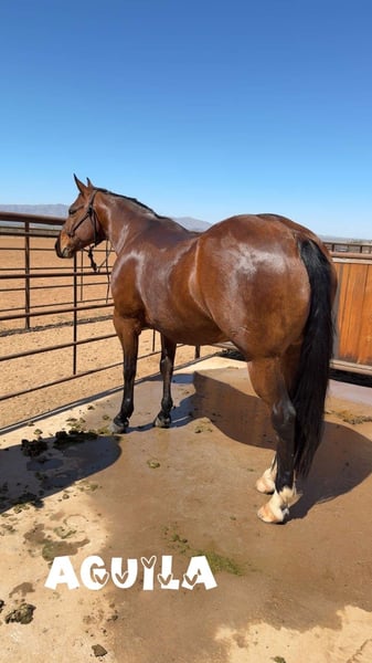 ⚜️𝓽𝓱𝓮 𝐆𝐎𝐋𝐃 𝓢𝓮𝓵𝓮𝓬𝓽⚜️ Happening now thru MONDAY | MARCH 23rd - Available EXCLUSIVELY on HorseBid's website! For more details and to register visit: www.Horsebid.com CONSIGNOR CONTACT: Breanna Jenkins 208-351-6607 LOCATION: Aguila, AZ BREED: QH REGISTERED: Yes REGISTERED NAME: PGDRYFIRESTORM COLOR: Bay HEIGHT: 15 AGE: 10 GENDER: Gelding Timon is a 10-year-old gelding standing 15 hands and built as heavy-duty as they come. He is shapey and soggy in every way, equipped with big bone and a big, round foot. Timon is a do-it-all kind of guy — he’s a fully finished barrel horse, breakaway horse, and head horse. He is by PG Dry Fire, making him Riata Buckle eligible! Timon is easy, easy to rope on. He runs flat and stays out of your way. He’s got plenty of speed but reads the cow and rates off naturally. He’s strong to the horn and has a snappy finish. Timon has spent the past several years of his life as a rope horse, but when it’s time to crack the barrels out, he never skips a beat. Just like the roping, he is very simple to run barrels on. He runs hard to a barrel, hunts it, and turns like one should. He never gets pushy and is as quiet and polite in the gate as you’ll find. Truly just point and go! If you’re after a junior rodeo horse that can go be competitive in more than one event, he’s the one. Timon isn’t just an arena horse — he has spent just as much time outside on the ranch. He’s branded thousands of calves, doctored yearlings, gathered and sorted pairs, and everything in between. He’s gone all day long in big country and has the best work ethic, making him the definition of a real ranch horse. And I think our favorite part about Timon is the fact that you can put anyone and everyone on him and know he’s going to be safe. He’s the kind you can give three months off, saddle up, and lope right out of his tracks. If you’re looking for a trail horse to enjoy a quiet ride on a couple times a month, he’s the pick. He’s been there and seen just about everything there is to see. Timon comes with zero ifs, ands, or buts. He’s sound and has never required any maintenance. He’s great to shoe, haul, gets along with other horses, and is just easy! He’s got the kindest personality, and we’re extremely proud to offer this one to the public.
