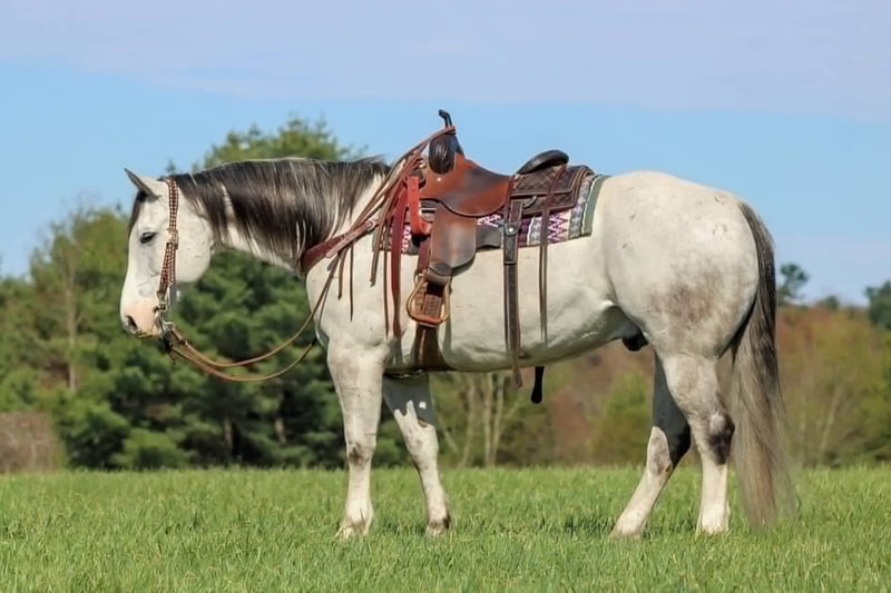 ▪️▫️◾️𝐭𝐡𝐞 𝑴𝒂𝒚 𝐒𝐞𝐥𝐞𝐜𝐭◾️▫️▪️ Happening now thru MONDAY | MAY 4th - Available EXCLUSIVELY on HorseBid's website! For more details and to register visit: www.Horsebid.com CONSIGNOR CONTACT: KS Select Horses 814-229-3290 LOCATION: Clarion, PA BREED: QH REGISTERED: Yes REGISTERED NAME: Oliver COLOR: Grey HEIGHT: 15 AGE: 10 GENDER: Gelding Oliver is a 10 Year Old Grey Quarter Horse Gelding. Standing 15 hands tall and has a nice stocky built to him. Oliver is a very nice all around good broke gelding that can do any job and do it well. He is a finished ranch horse that can do any job on the ranch and is very seasoned and been there and done that type of horse when it comes to working with cattle. Lately we have been using him a lot for trail riding. Oliver is a trail horse deluxe! Sure footed and goes any where you point him to go on the trail . Mud, Creeks, River, Logs handles it all with ease. We have rode him on the highway and into town. He is one of the best trail horses we have had . He is very well trained with a nice one hand neck rein, good stop and back up and side pass. Ride him with a rope around his neck and no bridle he is that good broke. He also rides very nicely in the arena and could go English or Western. Very friendly and loves attention and good for the farrier and vet. He is a very easy horse to ride and easy to be around on the ground. Super Nice All Around Gelding That Can Go In Any Direction! Oliver just recently had a health exam on 4-19-26. We can help arrange delivery anywhere in the United States. Call or Text Kris at 814-229-3290. Thank You and God Bless