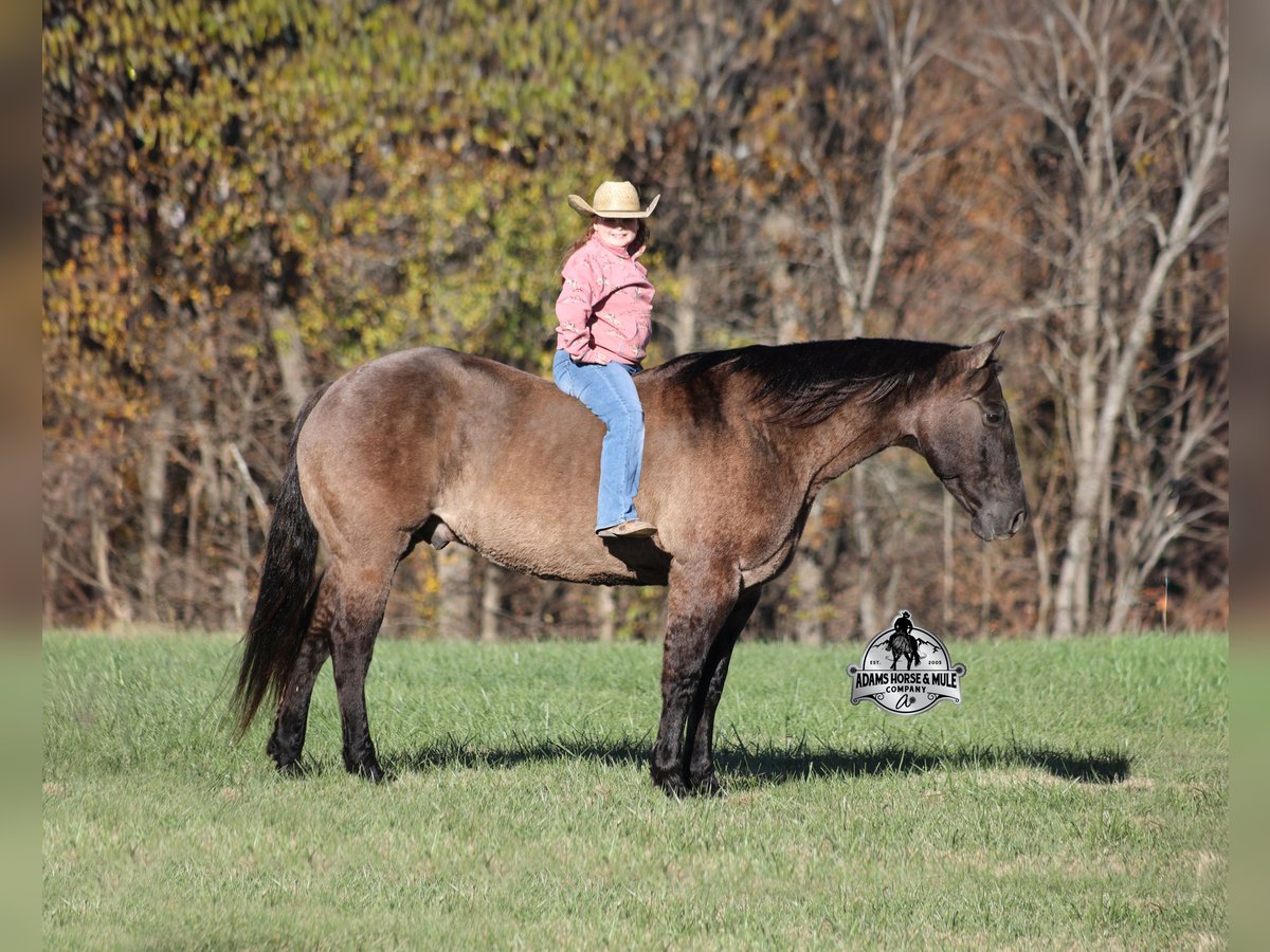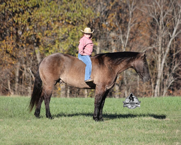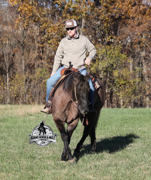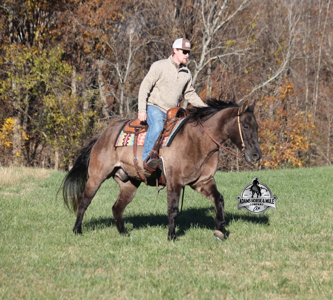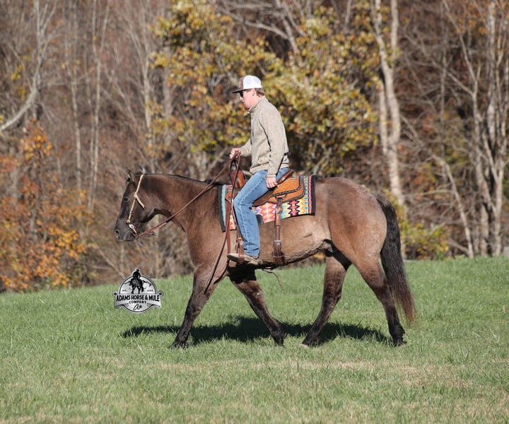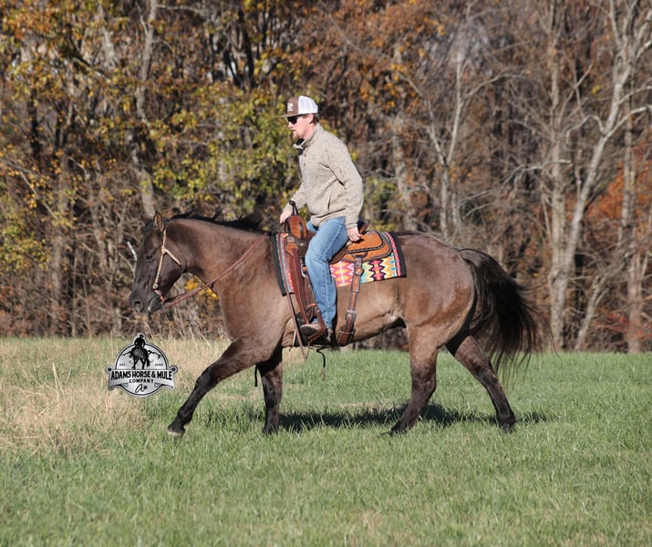 𝐀𝐝𝐚𝐦'𝐬 𝐇𝐨𝐫𝐬𝐞 & 𝐌𝐮𝐥𝐞 𝐂𝐨𝐦𝐩𝐚𝐧𝐲'𝐬 ✷𝑬𝒗𝒆𝒓𝒚 𝑴𝒊𝒍𝒆 𝑨 𝑴𝒆𝒎𝒐𝒓𝒚✷ 𝐄𝐗𝐂𝐋𝐔𝐒𝐈𝐕𝐄 𝐒𝐀𝐋𝐄 Happening now thru MONDAY | FEBRUARY 2nd - Available EXCLUSIVELY on HorseBid's website! For more details and to register visit: www.Horsebid.com CONSIGNOR CONTACT: Adams Horse and Mule Company 606-308-2461 LOCATION: Mt. Vernon, KY BREED: Quarter Horse REGISTERED: No COLOR: Grulla HEIGHT: 15 AGE: 10 GENDER: Gelding Laramie is a stout built, beautiful grulla gelding that is standing 15hh. He is 10 years old and will weigh over 1150lbs. Laramie is a true ranch horse that knows what an honest days work is! From pasture roping and doctoring to sorting pairs, he knows all about every aspect of being a ranch horse. If the work is done and you just want to have a relaxing trail ride, he can handle that job too. He will carry any rider safely over all terrains on the trails, from steep slopes to rough rocky areas! Laramie has been ridden in multiple states from Kansas to Texas down to Missouri and all around Kentucky. He has been worked at a large feedlot and rode pens daily. Laramie has a smooth jog, takes his leads in a nice lope, he reins around and spins each way and has a good stop. He has been exposed to all kinds of wildlife and works well with stock dogs. If you need a consistent, no fuss, ranch or trail horse… Laramie is sure to suit! Call 606-308-2461 with any questions.