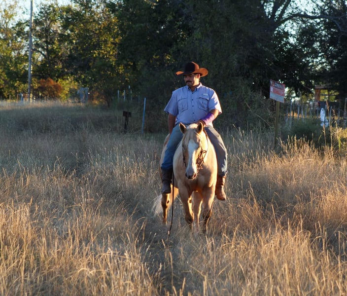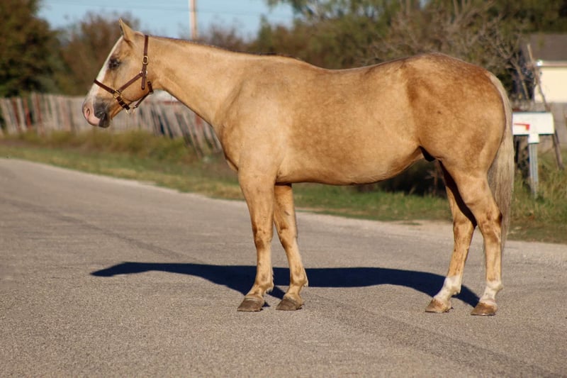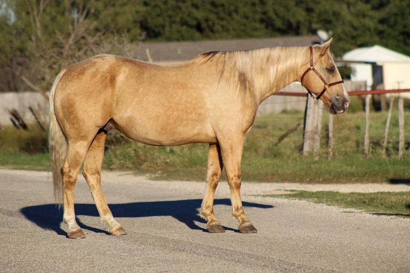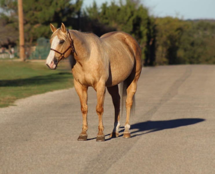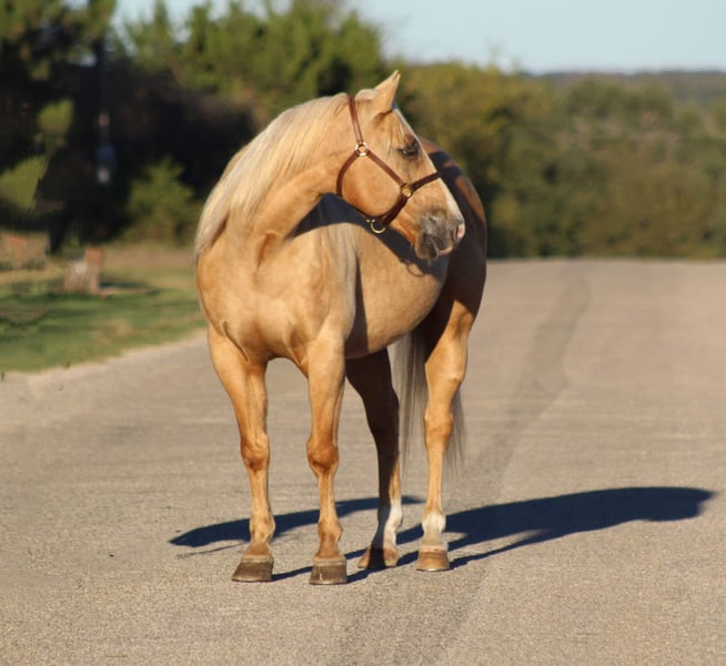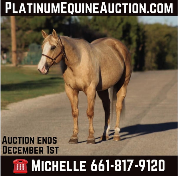 ONLINE AUCTION Place your bids at www.PlatinumEquineAuction.com Starting Bid $3500 Auction ends December 1st, 2024 Need a new saddle? Check out White Rock Saddles on our website or Facebook! Ken is a gorgeous GOLDEN palomino gelding standing 15 hands tall and is the perfect age of just 8 years old . He’s calm, cool and collected all day . Ken is the SWEETEST dude and has that perfect old soul attitude that always just wants to please . This guy will be your BEST FRIEND! Ken has dabbled in a little bit of everything from checking cows and fences to hitting the trails. He is fancy fancy with his gorgeous blaze face and two white hind socks and his stout build he is for sure going to get you noticed wherever you are and everyone will be talking about how gorgeous he is. Ken LOVES to mosey down the trails from the Fort Worth Stockyards on a busy Saturday afternoon with crowds of people coming up to love on him and take pictures with , loud bands, horse carriages and TONS of traffic he handles it all with ease. He is a blast to ride out down the quiet trails as well, he’s been rode all over numerous state parks from Texas to Arkansas. He has seen many wildlife out on the trails and is used to it all. He will walk down the trail low headed, he will cross down logs, goes through brush and crosses water with no issues at all. Ken is one you can walk out catch and jump on bareback and go for a nice relaxing stroll on. He will walk trot and lope circles in the arena. He has been hauled to many different arenas and out to MANY different areas to trail ride as well so hauling him out won’t be an issue. He is user friendly for the WHOLE family to enjoy. Ken is one of our FAVORITES to pick if we want to just go on a relaxing ride. He’s very laid back and always goes with the flow. He’s not one that needs rode everyday and worked hard to stay gentle. He’s currently turned out in a pasture with 3 other geldings and gets along great but he can also be stalled. Hes an easy keeper and no maintenance needed. Ken stands tied quite, stands for the farrier and stands for bathes. Hes easy to saddle and bridle. He loads and unloads off the trailer. I just know his new family is going to enjoy him as much as we have. Contact us to come try him, or we can set up a FaceTime also M $ Performance Horses Michelle 661-817-9120 If you need help with transport don’t hesitate to ask we have a list of reputable haulers that can get him safely to your doorstep WORLD WIDE including, Alaska , Mexico, Hawaii and Canada from our location in Stephenville, TX. ONLINE AUCTION Place your bids at www.PlatinumEquineAuction.com Starting Bid $3500 Auction ends December 1st, 2024 Need a new saddle? Check out White Rock Saddles on our website or Facebook!