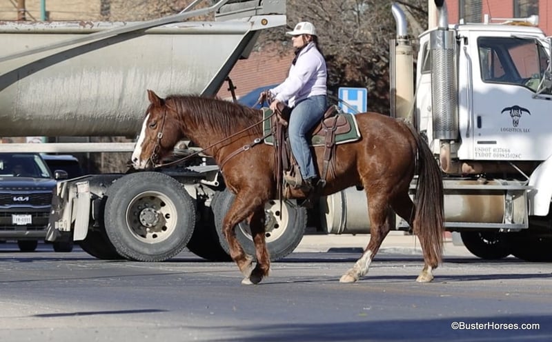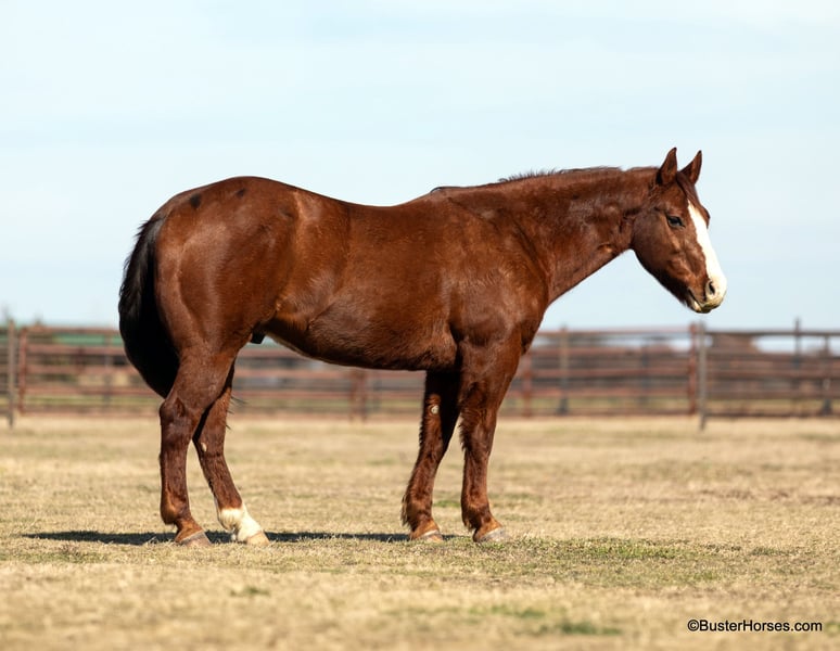 ONLINE AUCTION Place your bids at www.PlatinumEquineAuction.com Starting Bid $3500 Auction ends February 16th, 2025 Need a new saddle? Check out White Rock Saddles on our website or Facebook! Root Beer is a big thick made 9 year old, 15.1h stunning gelding! He is gentle every time you grab him and can live for weeks turned out to pasture and you can just catch him saddle him and go. He has the sweetest kind personality, and wants to be your friend and is in your pocket all of the time. He is the one that comes up to the fence just to spend time with you and he loves any attention you give him. When you pull in the driveway, he comes over just to see you in the truck! He is broad and comfy to ride, does not go a single tiny inch faster than you want to go, he is content to walk and jog around all day on a big loose rein. He is exceptionally good riding down the side of the highway and riding into town and around and in traffic. He hops right on the trailer like a seasoned old gentleman, and he is extremely easy to saddle, bridle, and will stand next to anything quietly while you climb on! He happily crosses water, and will ride anywhere you want him to in a group of horses, or he is also extremely comfortable and quiet and relaxed riding out all alone. Zero issues worrying about the barn or leaving his buddies. He is also super cozy and easy to ride bareback, we have thrown a halter on him and swung up on him many times. Please feel free to call us anytime if you have any questions about Root Beer, contact Buster Horses Ashley 214-605-7174 Root Beer has a full set of shoes on, his teeth were just done by our equine dentist this week, he was just shod last week, and he also was dewormed at that time. He is in great shape, a little on the fat side – and is ready to go to work doing whatever job you have for him. Watch his video, and to see additional videos, go to our website: BusterHorses.com or our Facebook page Buster Horses Root Beer is located in Weatherford, TX – one hour from Dallas / Fort Worth International Airport. He is an easy day trip, or fun overnight trip to come and try out, from anywhere! We are experienced, knowledgeable sellers, and we can help with quickly arranging affordable shipping to any buyer’s location – we have experience shipping worldwide – including regularly to Hawaii, Canada, Mexico, Europe, and South Africa. ONLINE AUCTION Place your bids at www.PlatinumEquineAuction.com Starting Bid $3500 Auction ends February 16th, 2025 Need a new saddle? Check out White Rock Saddles on our website or Facebook!