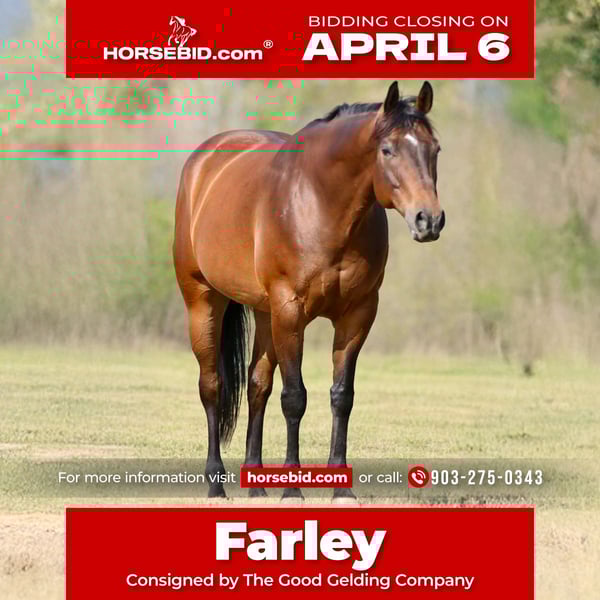 🌟𝑨𝒑𝒓𝒊𝒍 𝐀𝐋𝐋 𝐒𝐓𝐀𝐑 𝐋𝐈𝐍𝐄𝐔𝐏🌟 Happening now thru MONDAY | APRIL 6th - Available EXCLUSIVELY on HorseBid's website! For more details and to register visit: www.Horsebid.com CONSIGNOR CONTACT: The Good Gelding Company 903-275-0343 LOCATION: Athens, TX BREED: Aqha REGISTERED: Yes REGISTERED NAME: Willie Good Horse COLOR: Bay HEIGHT: 16 AGE: 10 GENDER: Gelding If you’re looking for a horse that can truly do it all—and do it well—Farley is the kind that doesn’t come around often. This is a finished, seasoned gelding with the kind of resume that speaks for itself, backed by 10 full pages of show miles across multiple disciplines. He’s the definition of a dependable, versatile partner. 10 years old, 16 hands, and 1400 lbs, you can’t look past a horse of this caliber. Farley is a standout in the show pen, having been successfully shown in western pleasure, hunter under saddle, and showmanship (SMS). He knows his job, shows up the same every time, and carries himself with the kind of consistency and polish that makes him a confidence builder for his rider. His transitions are smooth, his cadence is correct, and he’s got a flawless, easy lead change that anyone can appreciate. What really sets Farley apart is that he doesn’t live in a box. When you’re done winning in the arena, he’s just as happy to head out on the trail. He genuinely enjoys it—crosses water without hesitation, rides out alone or with a group, and stays steady and level-headed wherever you take him. He’s the same horse whether he’s been in full work or had some time off, making him an easy, low-maintenance ride to keep in your program. He’s also been used in lesson programs, proving his forgiving nature and reliability. Farley takes care of his rider, adjusts to their level, and stays honest and kind—making him suitable for a wide range of riders. To top it off, he’s been started over fences and has shown that he really enjoys it. If you’re looking to dabble in multiple disciplines or expand his already impressive resume, he’s more than willing. Farley is the kind you can confidently take in any direction—continue in the all-around, enjoy him as a dependable lesson horse, or simply have a fun, safe, and talented partner to ride and enjoy every day. He’s big, solid, experienced, and has the mind to match. This is a been-there, done-that gelding with a great attitude and the versatility to fit just about any program. Farley has loads of personality and is really just fun to have around and spend time with. He’d be happy to go back to work in a performance barn, but he’d be just as happy to be someone’s personal horse and show off all of his goofy traits; favorite places to scratch, the way his flips his lips up, and practically just acts like a dog. Farley has a full set of X-rays on file and he is completely sound. He wears a set of front shoes but he can go barefoot for those that prefer it.