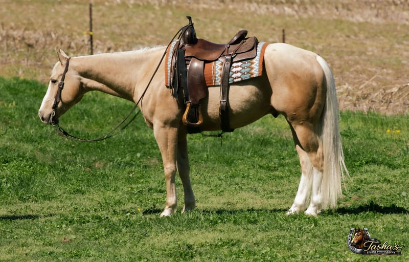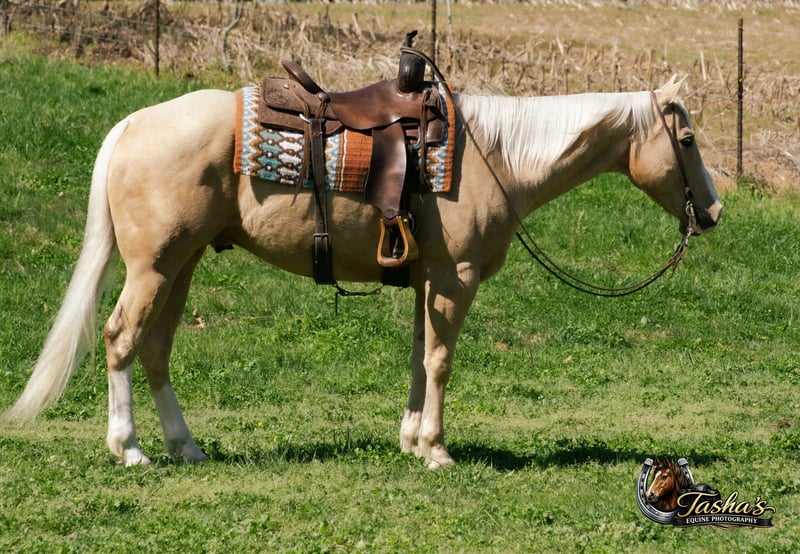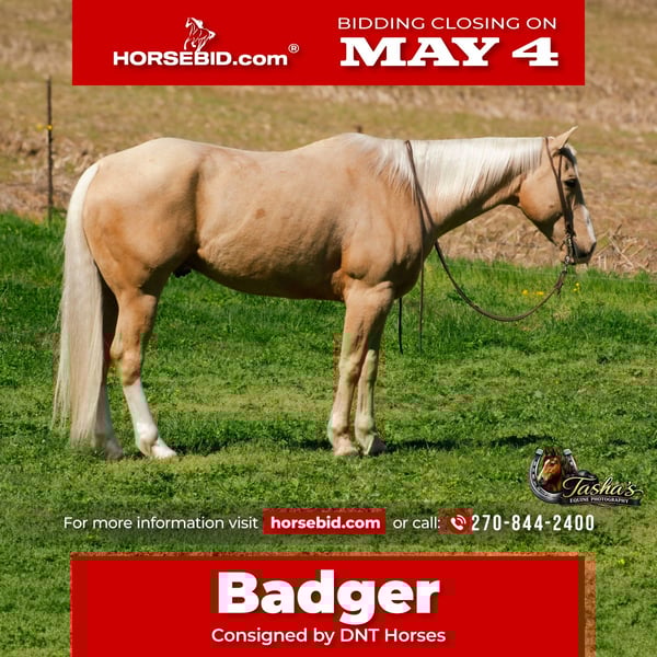 ▪️▫️◾️𝐭𝐡𝐞 𝑴𝒂𝒚 𝐒𝐞𝐥𝐞𝐜𝐭◾️▫️▪️ Happening now thru MONDAY | MAY 4th - Available EXCLUSIVELY on HorseBid's website! For more details and to register visit: www.Horsebid.com CONSIGNOR CONTACT: DNT Horses 270-844-2400 LOCATION: Henderson, KY BREED: Quarter Horse REGISTERED: Yes REGISTERED NAME: Two Smart Colossus COLOR: Palomino HEIGHT: 15.1 AGE: 10 GENDER: Gelding 2016 AQHA Palomino Gelding Two Smart Colossus Standing 15.1 hands of pure class, Badger is the kind you don’t just see — you remember. He’s a big, stout, old-school built gelding with a golden coat that shines for days. Grandson of Smart Little Lena, this is a horse bred with talent, brains, and presence. Badger has been there and done that. A true seasoned ranch partner, he’s handled every outside job: gathering, sorting, long days checking cattle, dragging, doctoring — no surprises, no drama. He’s the horse you saddle when the work needs done right. He rides one-handed, soft, and correct. Smooth as silk at the walk, jog, or lope — he’ll tuck his head, stay collected, and lope slow circles all day long. Old soul, big heart, more whoa than go. He’s the gentleman that waits on you, not the horse you have to babysit. Cobalt is traffic safe, flag-proof, balloon-proof, obstacle-tested and unfazed by chaos. Ride him alone down a country road or through the middle of town — the world can be loud and he stays quiet. He’s the horse everyone points at and whispers, “I want one like that.” He’s a beautiful mover, naturally balanced with a smooth stop and a classy turnaround. On the ranch he’s reliable. On the trails he’s a joy — bridges, water, logs, rough country — he simply walks through and gets it done. If you want a horse that brings big-time looks, honest broke ability, and family-friendly temperament, here he is. Badger makes every ride feel like a good decision. We invite anyone and everyone to come meet and ride Badger at our barn in Henderson, Kentucky. We are happy to assist with transportation arrangements. For any questions about Badger please contact Tasha 270-844-2400