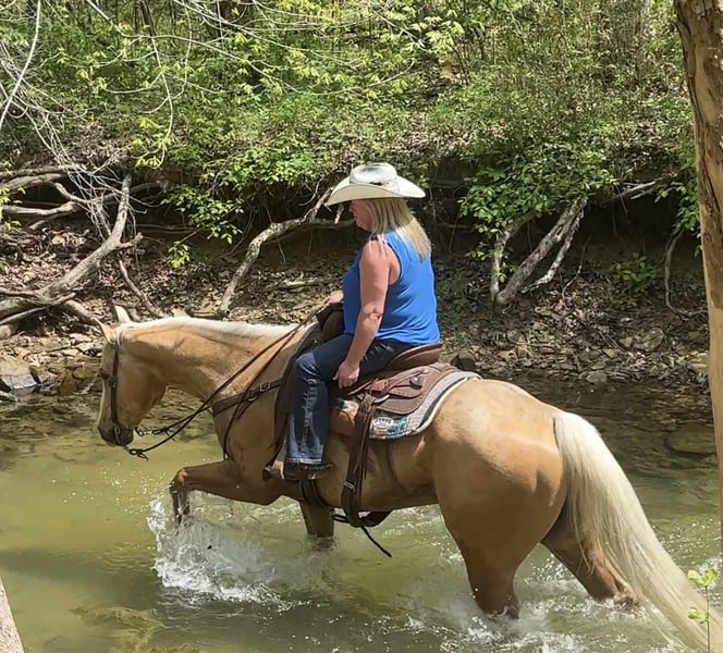 Badger, gelding palomino AQHA di 10 anni, alto 15,1 hh