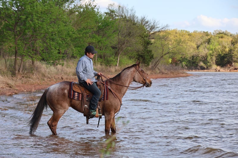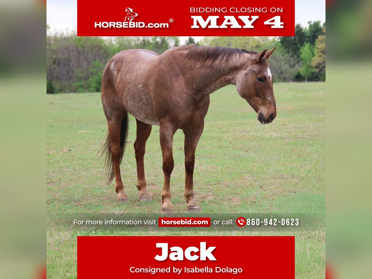 ▪️▫️◾️𝐭𝐡𝐞 𝑴𝒂𝒚 𝐒𝐞𝐥𝐞𝐜𝐭◾️▫️▪️ Happening now thru MONDAY | MAY 4th - Available EXCLUSIVELY on HorseBid's website! For more details and to register visit: www.Horsebid.com CONSIGNOR CONTACT: Isabella Dolago 860-942-0623 LOCATION: Ripley, OK BREED: QH REGISTERED: Yes REGISTERED NAME: KS DANDY DELUXE COLOR: Red roan HEIGHT: 15.1 AGE: 10 GENDER: Gelding Meet Jack the red roan gelding who’s got the looks, shape, ride, and personality to win you over! Jack is a 10 yr old gelding standing at 15.1 hands and weighing 1125lbs! He’s built phenomenally with a thick long neck, clean straight legs, big hip, and gorgeous red roan coat… the cherry on top! You’ll never have to stress about this horse either, he’s a very easy keeper who gets along with any horse and person and will meet you right at the gate! Jack loves his people he’ll be right there waiting for you every morning in the barn! If he was a person he would have the most polite manners! He minds his own business but also wants to be right there with you, he’s a respectful guy! Jack is one you can truly call kid broke!! Anyone in the family can saddle this gelding and lope him right out of his tracks with no worries! He rides around soft and correct, turns around and has a good stop! You can ride him in nearly any bit! He’s broke enough to head, heel, and play day off of! Jack has done it all from doctoring cattle on the wheat pasture, gathering cattle, loading trucks, elk hunting in the mountains, to play days and long days! He’s your right hand man you point where you want to go and no matter what he’ll get you there! He’ll walk through water, logs, ditches, brush, town, anything! He has no spook, buck, or rear. This horse is truly a gentle ranch horse deluxe!