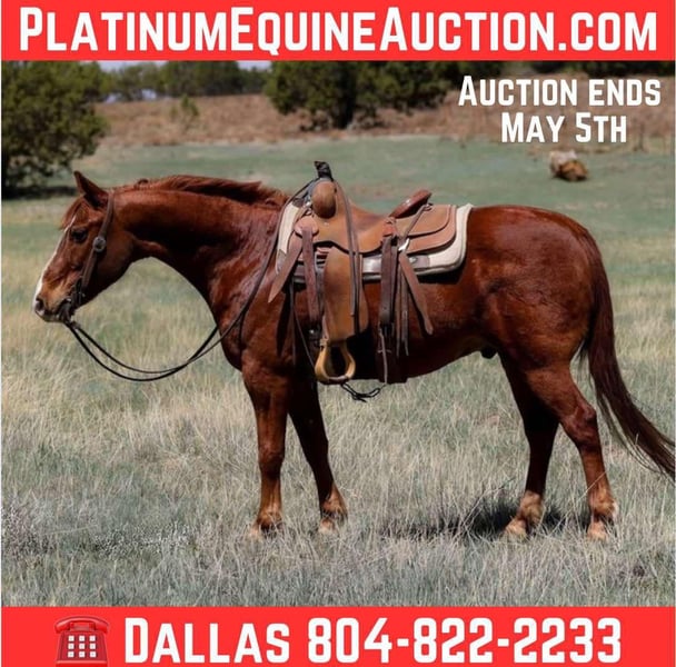 ONLINE AUCTION Place your bids at www.PlatinumEquineAuction.com Starting Bid $3500 Auction ends May 4th, 2025 Need a new saddle? Check out White Rock Saddles on our website or Facebook! Alamo is a grade 10 year old gelding standing 14.1hh. This gorgeous little stout made, dense boned gelding is an absolute blast to ride no matter what you ask of him! Whether you’re looking to mosey on down the trails, play around in the arena, or go do a long days work Alamo is the one for you! We’ve used Alamo extensively around the ranch making him surefooted, well rounded, and as reliable as can be no matter what you throw his way. Mosey on down the trail, trek through the rocky rough country, cruise through flowing creeks and rivers, bulldoze through thick brush, jump fallen logs, you name it and Alamo will ride right on through it. No matter where you plan your next adventure, Alamo will be eager to go! Don’t have any trails? No problem! Alamo is just as great in town! Speeding traffic, painted crosswalks, barking dogs, cruising bikes, walking pedestrians. Alamo will ride right on by without a care in the world. Not only is this gelding a blast to ride outside or through town, he’s just as fun in the arena! He will walk, trot, and lope both ways with ease as well as neck rein and has a good stop. No need for a saddle or bridle! Hop on bareback with a halter and Alamo will take just as good care of you!!! Alamo is easy to catch, and good to groom, saddle, bridle, bathe, shoe, and load. Will come with a clean coggins and health! Transport can easily be arranged anywhere in the US!!! Located in Camp Verde, AZ. Contact D/C Equine Services Dallas 804-822-2233 with any questions. ONLINE AUCTION Place your bids at www.PlatinumEquineAuction.com Starting Bid $3500 Auction ends May 4th, 2025 Need a new saddle? Check out White Rock Saddles on our website or Facebook!