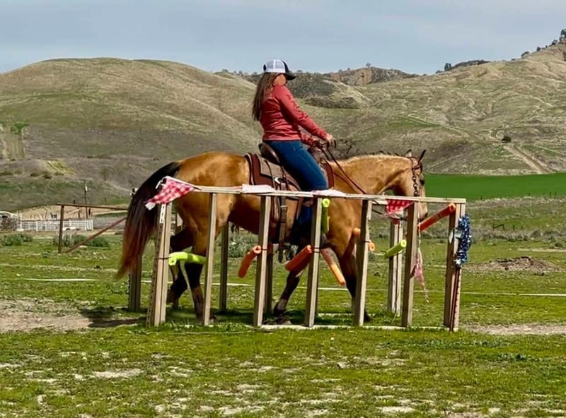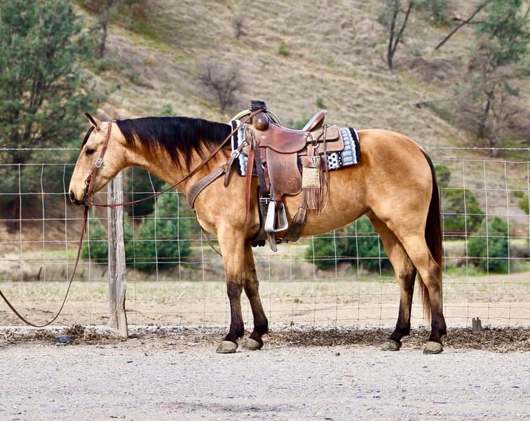 ONLINE AUCTION Place your bids at www.PlatinumEquineAuction.com Starting Bid $3500 Auction ends April 6th, 2025 Need a new saddle? Check out White Rock Saddles on our website or Facebook! Dox Crystal Olena is a stunning like AQHA buckskin mare. She is coming 10 years old this June. Standing at a stocky 14.2HH, she can pack both kids and adults! Crystal is as cute as a button and such a user friendly horse. Crystal neck reins, has a great stop, is very responsive to both rein and leg cues, making her easy for both novice and advanced riders. She knows both leads, is easy to transition, and has that perfect medium pace. Crystal is just as smooth out on the trail as she is in the arena. She is very familiar with forest trails that are filled with bicycles, hikers, and other equestrians. She will go out alone, or in a group and is content anywhere in the pack. Crystal crosses rivers, bridges and brush. Will stay on those skinny hillside trails and keep up for hours! Crystal is safe and dependable, she does not get fresh, and is not a spooky horse at all. Flags, banners, and tarps aren’t a problem and she doesn’t mind them all over her. She has been hauled all over town and is easy to load in the trailer. Crystal has been exposed to heavy, loud traffic, and doesn’t have a care in the world. She’s been used to gather and move cattle as well. You can easily catch her out in pasture, or keep her stalled up in the barn. She stands quietly tied for tacking up, bathing, and is great for the farrier. You can clip her ears, face and legs no problem. Crystal is not a “marish” mare and gets along with all other horses, as well as other farm animals. With her mind, build, and demeanor she can go to a home in any discipline. She is located in Bitterwater, CA. Please contact Cheyenne Rey 831-537-8746 for any more info or make arrangements to come visit her! ONLINE AUCTION Place your bids at www.PlatinumEquineAuction.com Starting Bid $3500 Auction ends April 6th, 2025 Need a new saddle? Check out White Rock Saddles on our website or Facebook!