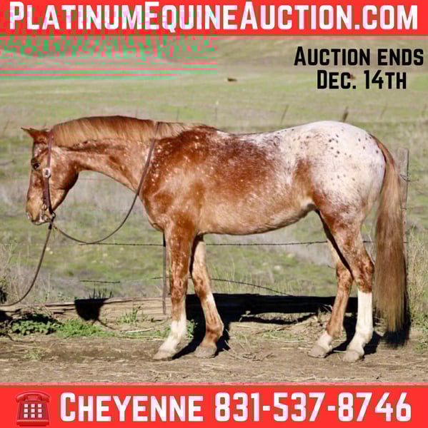 ONLINE AUCTION Place your bids at www.PlatinumEquineAuction.com Starting Bid $3500 Auction ends December 14th, 2025 Need a new saddle? Check out White Rock Saddles on our website or Facebook Biggs, a 10-year-old grade Appaloosa gelding who truly embodies everything a dependable trail partner should be. Stands 14.2 hands high, Biggs may be compact, but he carries himself with the calm confidence of a seasoned veteran. His gentle disposition and unshakeable steadiness makes him a horse that riders of all levels can trust and enjoy. Biggs is an expert on the trails. He has been ridden straight from the house, through town, and all the way to the beach, where like most of us, is happiest by the water. He has zero spook; nothing flusters him, and he remains calm, cool, and collected in every situation. Whether faced with traffic, farm equipment, wildlife, or unfamiliar terrain, Biggs approaches each new experience with quiet assurance. He is a true “point-and-go” type, Biggs never hesitates about direction and willingly travels wherever he is asked, making him an ideal companion for riders who value reliability. He even has a few fun tricks to show off—he will lay down with a light cue and sit up like a puppy, adding a bit of charm to his already lovable personality. Under saddle, Biggs is responsive and well-mannered. He neck reins lightly, listens to all cues with an easy, willing attitude, and moves with a nice medium-soft pace that keeps riders comfortable for hours. In the arena, he knows his leads, carries his head low, and stays relaxed and steady. On the ground, he is just as polite, handling easily for grooming, tacking, and everyday care. Biggs has been around cows, farm animals, traffic, and all sorts of noises, making him well-seasoned for the weekend warriors, or everyday riders. He is absolutely safe for anyone to ride, and his kind demeanor makes him a joy to be around. For riders seeking a trustworthy, unflappable, and fun trail horse with a willing heart, Biggs is the total package. He is located in Bitterwater, CA. for more information please contact Cheyenne at 831-537-8746. ONLINE AUCTION Place your bids at www.PlatinumEquineAuction.com Starting Bid $3500 Auction ends December 14th, 2025 Need a new saddle? Check out White Rock Saddles on our website or Facebook