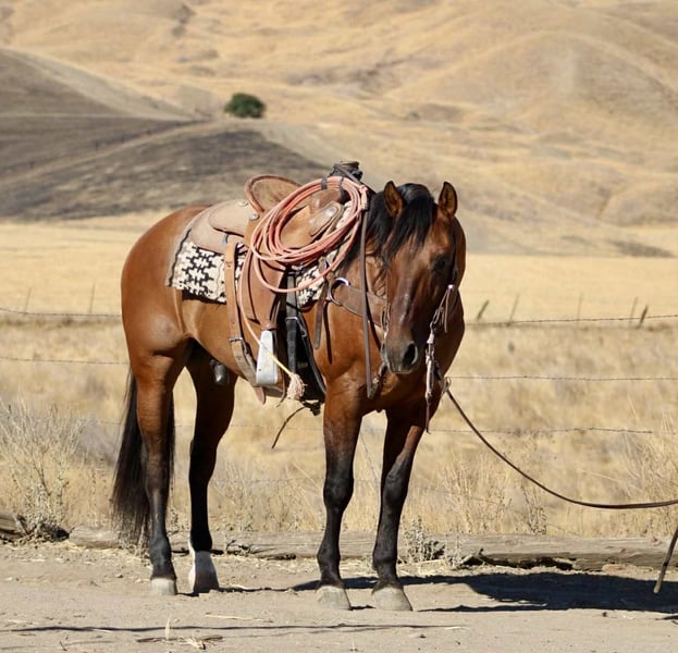 ONLINE AUCTION Place your bids at www.PlatinumEquineAuction.com Starting Bid $3500 Auction ends September 21st, 2025 Need a new saddle? Check out White Rock Saddles on our website or Facebook They say everything’s better with bacon, and this one proves it. Bacon is an 10 year-old, 14.3-hand dun gelding with tiger stripes on his legs, a coat full of dun factor, and the kind of presence that makes folks look twice. Bacon isn’t just a pretty plate — he’s steady, broke, and built to go anywhere. He’s crossed rocky trails, splashed through creeks, eased over bridges and logs, and marched right through tarps and pool noodles like he’s seen it all before. He carries a forward, ground-covering walk and an easy trot that eats up country without eating up your patience. In the arena, he’s as smooth as butter on a hot skillet. Picks up both leads, stops soft, backs light, and makes every transition feel easy. He’s the kind you hop on when you just want a relaxing, uncomplicated ride — but he still feels sharp enough to keep things fun. Outside, Bacon has gathered cattle and handled ranch chores with the same quiet, reliable style. He’s not a hothead, not pushy — just a worker with good manners and a good mind. On the ground, he’s the gentleman of the barn. He ties, bathes, hauls, stands for the farrier, and greets you at the gate. Whether stalled or pastured, he fits right in. Stout, balanced, and handy at 14.3 hands, Bacon is as versatile as he is flashy. Western, English, trail, or ranch work — this gelding is ready to season your life with the right kind of flavor. 📍 Longhorn Ranch – Paicines, CA 📞 Dina – 831-537-1915 ONLINE AUCTION Place your bids at www.PlatinumEquineAuction.com Starting Bid $3500 Auction ends September 21st, 2025 Need a new saddle? Check out White Rock Saddles on our website or Facebook