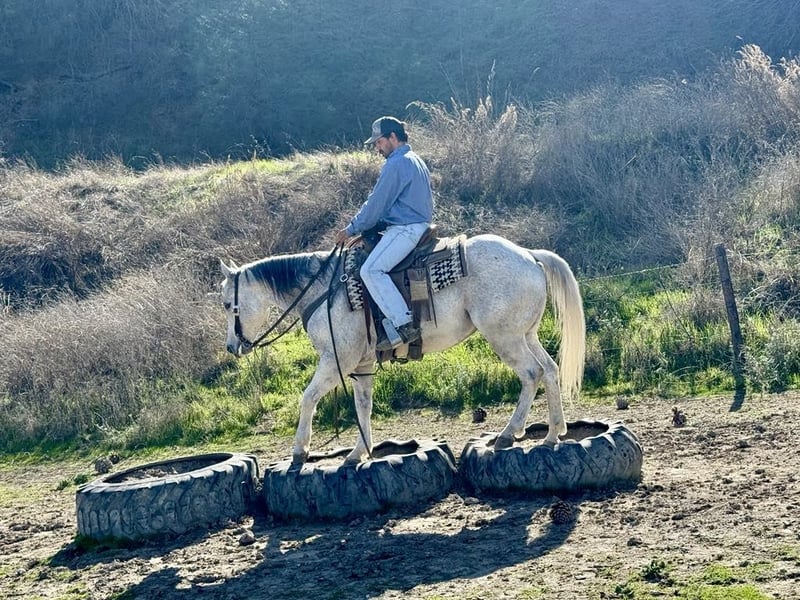 ONLINE-AUKTION Geben Sie Ihre Gebote unter www.PlatinumEquineAuction.com ab. Startgebot $3500 Die Auktion endet am 9. März 2025. Brauchen Sie einen neuen Sattel? Schauen Sie sich White Rock Saddles auf unserer Website oder Facebook an! Benz - er macht seinem Namen alle Ehre! Dieser Kerl steht für Luxus, Komfort und Stil. Mit einer Größe von 14,3 Händen ist er eine atemberaubende 10-jährige dapple grey Schönheit, die die perfekte Größe und Reife hat. Er hat einen Lebenslauf, der jeden beeindrucken würde, von der Arbeit auf der Ranch bis hin zu Rodeos, und er ist das perfekte Familienpferd oder ein idealer Weggefährte. Benz ist sehr gut ausgebildet; er dreht sich, gleitet und hat die sanftesten Übergänge in seinen Gängen, was es zu einem Vergnügen macht, ihn zu reiten. Sie können ihm vollkommen vertrauen! Er kann eine Kuh jagen oder Sie auf einen ruhigen Ausritt mitnehmen. Er ist das zuverlässigste und sicherste Pferd, auf das Sie jemals aufsteigen könnten. Er kann seitwärts gehen, schwenken und hat diesen Schaukelstuhl-Loop, auf dem man stundenlang sitzen könnte. Er ist leicht einzufangen, großartig für den Hufschmied und den Tierarzt, und er lädt und entlädt sich wie ein Champion. Er steht angebunden, und das Satteln und Zäumen ist ein Kinderspiel. Er fühlt sich sowohl im Stall als auch auf der Weide wohl. Benz hat Rinder in schwierigem Gelände eingesammelt und überquert alles - Gestrüpp, umgestürzte Bäume und sogar das tiefste Wasser ohne Aufhebens. Egal, wie viel Zeit vergeht, er ist immer noch das gleiche zuverlässige Pferd. Er ist schon durch belebte Straßen geritten, hat Fahnen getragen und zuckt nicht mit den Augen, wenn es um Planen oder Bälle geht. Egal, ob Sie ein Cowboy, ein erfahrener Trail-Kenner oder einfach nur jemand sind, der einen gemütlichen Ausritt sucht, Benz ist Ihr Mann. Sein sanftes Wesen macht ihn zum idealen Familienpferd für Reiter mit unterschiedlichen Fähigkeiten. Dieser unkomplizierte Wallach ist ein echter Gewinn für die Familie, und er ist in der Blüte seines Lebens und hat so viel Wissen weiterzugeben. Er hat keine Laster, er ist solide, vernünftig und superschlau. Wir haben jeden Moment mit diesem wunderbaren Wallach genossen, und wir werden ihn vermissen. Ich kann mir nicht vorstellen, dass sich jemand nicht in sein freundliches Wesen verliebt! Wenn Sie Interesse haben, können Sie sich gerne an die Longhorn Ranch wenden und einen Termin für ein Treffen mit ihm vereinbaren. Sie können Dina unter 831-537-1915 kontaktieren. Er befindet sich in Paicines, CA. Vertrauen Sie mir, Sie werden ihn lieben! ONLINE-AUKTION Geben Sie Ihre Gebote unter www.PlatinumEquineAuction.com ab. Startgebot $3500 Die Auktion endet am 9. März 2025. Brauchen Sie einen neuen Sattel? Schauen Sie sich White Rock Saddles auf unserer Website oder Facebook an!