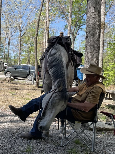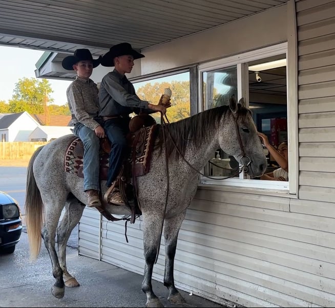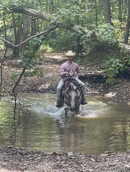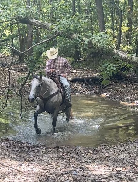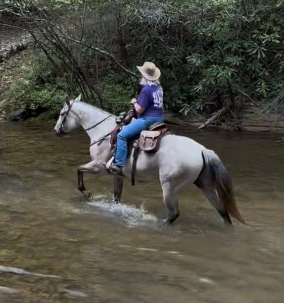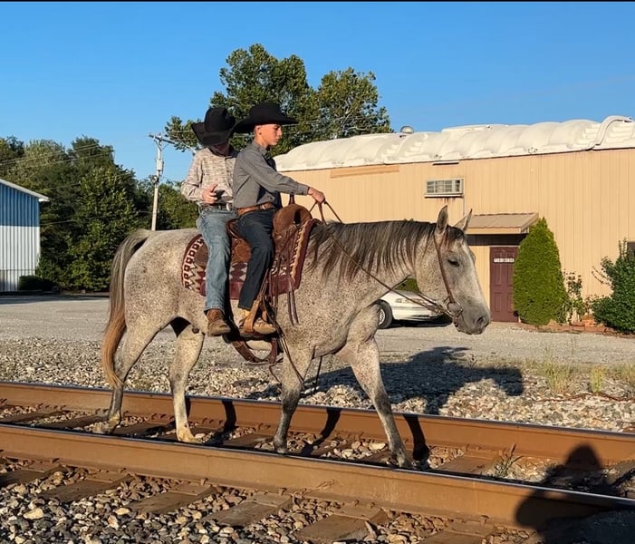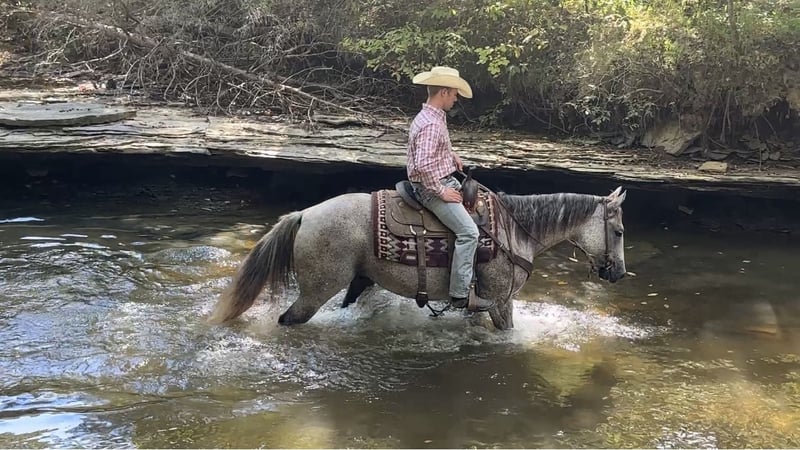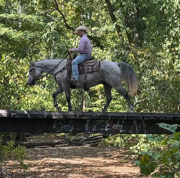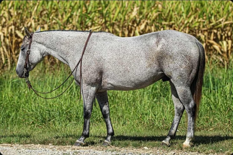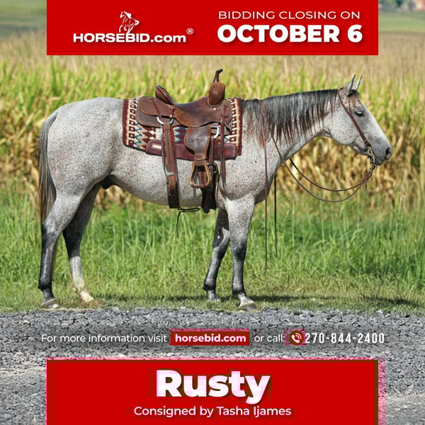 🍂 𝓐𝓾𝓽𝓾𝓶𝓷 𝑨𝑳𝑳 𝑺𝑻𝑨𝑹 𝑳𝑰𝑵𝑬𝑼𝑷 🍂 Happening now thru MONDAY | OCTOBER 6th - Available EXCLUSIVELY on HorseBid's website! For more details and to register visit: www.Horsebid.com CONSIGNOR CONTACT: Tasha Ijames 270-844-2400 LOCATION: Henderson KY BREED: Quarter Horse REGISTERED: Yes REGISTERED NAME: Rockets Leo Bar COLOR: Grey HEIGHT: 14.3 AGE: 10 GENDER: Gelding AQHA 2015 Rockets Leo Bar "Rusty" is a stunning 10 year grey gelding who turns heads everywhere he goes. He is a register Bay Roan but greyed out as he got older. Standing a perfect 14.3 hands tall, Rusty is built right-with a good balanced conformation, strong bone, and a kind expression. Rusty is naturally gentle, well broke and rides one-handed. He is soft in the bridle, and remains calm and consistent in all situations. He's family-friendly and suitable for riders of all levels, offering a smooth and enjoyable ride whether you're in the arena or out on the trail. Rusty will stand at a mounting block for you to get on and off. He will stand tied, stands to saddle and groom. He’s been on several overnight and week long trail rides and does great in new places. You can tie him to a picket line with no issues. Rusty will load and unload his self on the trailer and is no stranger to a ramp. On the trail, Rusty is confident and steady-he crosses water, maneuvers through rough terrain, and handles obstacles with ease. With a solid ranching background, he is well-versed in pushing, sorting and roping cattle, and is no stranger to daily ranch chores. He steps right into a lope with ease and stays collected. Slow lopes circles both ways, stays in his correct leads, and side-passes to open and close gates. This guy absolutely earns his keep and will be a favorite at anyone's barn. Easy keeper, low-low on the totem pole. He will not be cinchy, humpy and time off does not bother him. Rusty will ride bridle-less, bareback, turns around nicely and has a good stop. They just don't come any better than Rusty. He has been in good hands all of his life, and he is looking for his next best life. We invite anyone and everyone to come meet and ride Rusty at our barn in Henderson, Kentucky. We work with several shippers and are gladly to assist with transportation arrangements. PPE at buyers expense is always welcomed. Contact Tasha (agent) at 270-844-2400 for any and all questions.