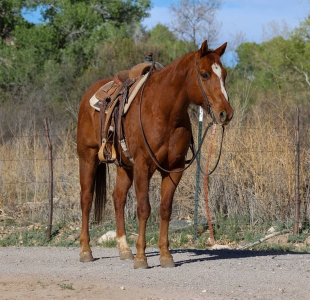 ONLINE AUCTION Place your bids at www.PlatinumEquineAuction.com Starting Bid $3500 Auction ends May 11th, 2025 Need a new saddle? Check out White Rock Saddles on our website or Facebook! Axel is a grade 10 year old gelding standing 14.3hh. This gelding is the absolute definition of a been there done that ranch horse! Axel has seen countless miles of rough country across Arizona and New Mexico, doing absolutely every single job around the ranch, making him versatile, safe, and very very broke. Drag calves to the fire, sort in the alley, work a gate, load trucks, doctor yearlings, gather in the big country, ride miles of fence, pack salt, you name it and Axel has done it!! Axel is surefooted as can be even if you’re in the rockiest roughest country around. Absolutely so spooky and bulldoze right on through whatever you put in front of him. Thick brush, rough country, flowing waters, anything you can think of Axel will mosey right on through unphased as can be. This awesome gelding is not only great to ride outside, but just as fun in the arena! He will walk trot and lope both ways with ease, as well neck rein, side pass, and has a great stop! If you’re looking for a great gelding to go do a long days work, mosey on down the trail, or have a blast playing around in the arena, then look no further. Axel is your guy! He is easy to catch and good to groom, saddle, bridle, bathe, shoe, and load! Will come with a clean coggins and health! Located in Camp Verde, AZ. Contact D/C Equine Services Dallas 804-822-2233. ONLINE AUCTION Place your bids at www.PlatinumEquineAuction.com Starting Bid $3500 Auction ends May 11th, 2025 Need a new saddle? Check out White Rock Saddles on our website or Facebook!