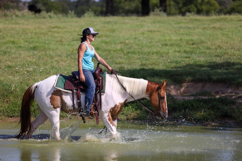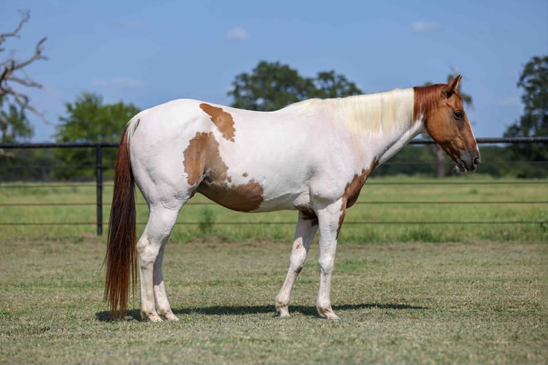 ONLINE AUCTION Place your bids at www.PlatinumEquineAuction.com Starting Bid $3500 Auction ends August 31st, 2025 Need a new saddle? Check out White Rock Saddles on our website or Facebook Meet SCOOBY! He is a 14.3hh, 10-Year-Old Chestnut Tobiano Paint Gelding. This handsome gelding is the total package – safe, gentle, and easy on the eyes. Standing at 14.3 hands, he’s the perfect size for both adults and youth. At 10 years old, he has the experience and steady mind to make every ride enjoyable. He’s extremely gentle and dependable, making him suitable for riders of all levels – from beginners wanting a trustworthy partner to experienced riders looking for a fun, uncomplicated horse. He rides quiet and consistent, with a smooth way of going and a willing attitude. Not only is he safe, he’s also a real looker – a beautifully marked paint with a kind eye and classy build that always gets attention. Whether you’re riding down the trail, in the arena, or just enjoying his company in the pasture, this gelding is as easy-going as they come. If you’re looking for a pretty, people-friendly gelding that anyone can ride, this one checks all the boxes! Located in Canton, TX. Contact Bailey at Slaton Saddlery 903-288-1555 with any questions. ONLINE AUCTION Place your bids at www.PlatinumEquineAuction.com Starting Bid $3500 Auction ends August 31st, 2025 Need a new saddle? Check out White Rock Saddles on our website or Facebook
