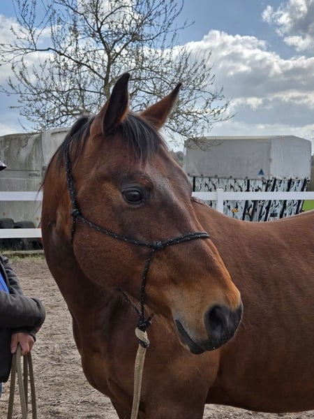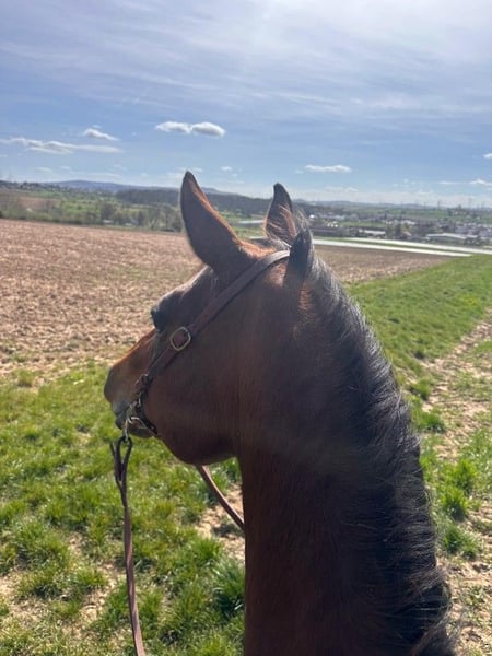 Charly is an honest, high-ranking gelding who would love to do more than he is able to with us. We purchased him as a beginner’s horse for further training, but unfortunately, he is not suitable for that purpose. He has never bucked or bolted with us, but it is noticeable that he becomes stressed if not ridden correctly. Under regular saddle work with an experienced rider, he responds well to subtle aids and enjoys working. He also takes pleasure in outings. Since he was gelded late, he should be kept in a herd of geldings. He feels significantly more comfortable in an open stable than in a box, which is why he is only available for sale into a suitable turnout situation. Depending on the footing, Charly may need front shoes. Due to a probable pollen allergy in spring, which causes him to cough, he is offered at a reduced price. The tack (saddle, bridle, blankets) can be purchased additionally upon request.