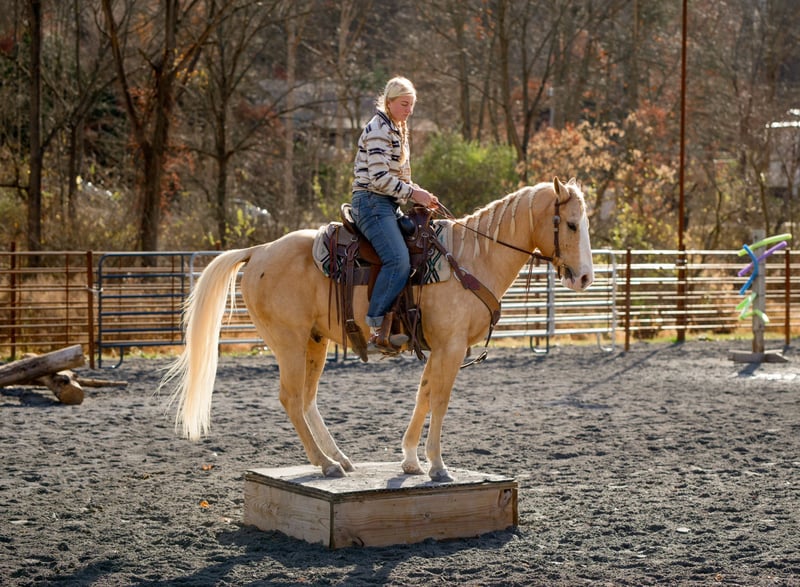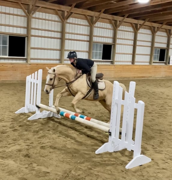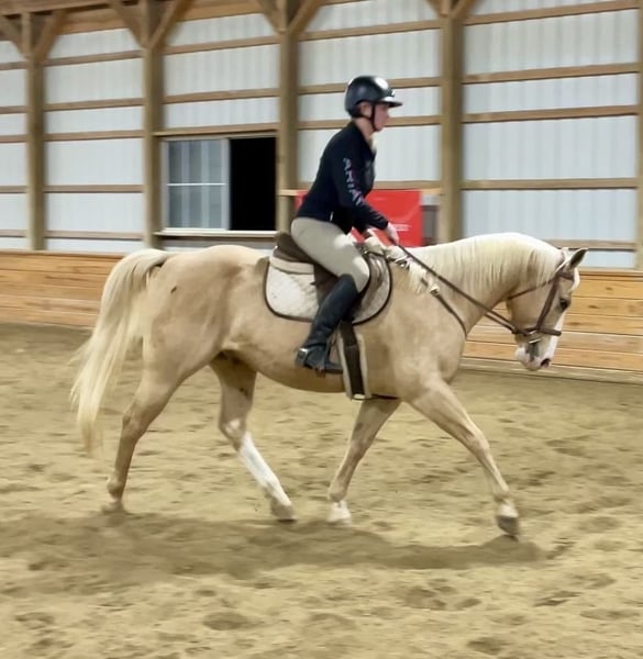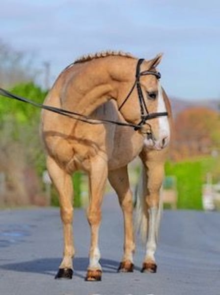 "AVAILABLE ON ONLINE HORSE AUCTION AT www DOT MagicHorseAuction DOT com BIDDING OPEN NOW thru TUESDAY | MAY 13th - BUY IT NOW AVAILABLE! *Final price will be determined on auction site* CONSIGNOR CONTACT INFO: Joe Vitale 314-422-3347 LOCATION: Pacific, MO "“Donavan” is a 9yr old, 15hh, QH gelding, who is the ultimate, versatile, safe, unicorn, that everyone needs in their life! Donnie is a true all-arounder, and no matter what discipline you currently, or want to ride in, this boy has something for everyone! Everyone that knows me, knows how much I love this horse. Here is a beautiful, palomino gelding that can dabble in absolutely anything that you want!!! I don’t even know where to start, but I will start by saying this boy is true, honest, and safe. I can genuinely say, I have never met a horse like Donavan. A horse that you can throw into any show or discipline, and he looks like he belongs there every time!!! Donnie is beginner safe, kid safe, husband safe, yet knows more than I do, and is a great teacher. In the barn, Donnie is as quiet as a mouse. He doesn’t ask for anything. He will stand on the cross ties all day long to be groomed, bathed, tacked, braided, etc. He has docile and gentle ground manners and will tiptoe around with a child. He doesn’t mind commotion and dogs running around while he is on the cross ties. He is very sweet and in your pocket and has never offered to be rude in any type of way. He is the type of horse that you can trust turning the kids loose with, knowing that he will be gentle with them. Donavan will make you feel excited to get into the saddle. He gives off an amazing vibe, and will put a smile on your face every single ride. Looking for a safe trail mount? Donnie is a trail machine and will go absolutely anywhere you ask. Through the water, over the logs, down the roads, and if you don’t feel like using a bridle today, go for a ride with a neck rope. I took Donnie out on the windiest, coldest day, for a two hour trail ride with nothing but a rope around his neck. It is such an amazing, fun, free, feeling knowing that your horse is completely in control even though you don’t have a bit in his mouth. Donavan will lead, follow, go out alone and in groups. He is safe with dogs and hounds riding on his heels. He will gently step over logs, rocks, bridges, he is very sure footed and not clumsy. He is safe with traffic, bikes, wildlife, etc. Donavan has been over night camping and will highline, or stay in a stall. Pack your saddle bag full of beer, and go enjoy your ride. Drop your reins and let Donavan take you for a relaxing adventure! He would make a great guest horse, camping partner, husband horse, kids horse, you name it. Donavan rides western, english, and bareback. Again, this boy is versatile. He came to me knowing more about western riding and reining than I do. I have actually learned so much from riding him, and he is very forgiving. I have never ridden a slide stop, and I know for a fact that I am not doing it right, but he does his job and takes care of me. He doesn’t have a preference, tack him up english and go jump around or dabble in dressage, or go play around with cows and practice your reining pattern. He knows both western and english buttons, so don’t be afraid if you don’t know one or the other. His gaits are smooth, and comfortable. Donnie will ride around as a push ride, but he goes right to work when he knows it is time to work! He is currently set up as safe for beginners, yet knows so much and has the willingness to please and entertain advanced riders. Me, an advanced rider, cannot wait to ride him, and learn from him every ride. In the ring, Donavan will walk, jog, trot, extended trot, lope, canter, and move out into gallop all on a loose rein, or collected. He is the perfect combo of whoa and go, and he can tell when he has a kid on him, or when he has to go to work. I have hauled Donnie to tons of different trails and arenas and he is the same horse every time. I let him sit for weeks, throw him in the trailer and go to a show and he steps right into the ring and does his job. I have shown him in sorting, team penning, and trail obstacle. He would make someone an amazing show horse in the western and english world. He would do amazing in ranch trail, ranch riding, reining, trail, western dressage, classical dressage, hunters, and much more. He has beautiful gaits! Donovan’s gaits are very easy to control, he knows voice commands and will respond to your seat and legs. Throw a kid or beginner on him and he will gently go around the ring. Hop on and put him to work, and he will slide stop, spin, side pass, move laterally off of leg, collect, jump, you name it. He knows his leads, and will go from walk to lope with a kiss. I have ridden him a lot with just a neck rope as well!!! Again, this horse knows more than I do in the ring, yet he will ride like a lesson horse, being less sensitive to leg etc, until you ask him to go to work and he will turn on his buttons! You can easily bring him down through the gaits, or ask for a big stop. He knows how to move his shoulders, hind quarters and rib cage. Donavan will pop over fences on the buckle, and does not get forward while jumping. He has super cute form over fences as well! With that being said, I took this boy out fox hunting for thanksgiving, not realizing how many people were going to attend and how fast that we were going to travel! Donavan jumped everything and didn’t hesitate at the big stuff, he absolutely shocked me, as he willingly jumped huge logs and fences. He was a blast to hunt, stopped and stood at checks, and was fantastic with the hounds. Donavan has given walk /trot lessons to kids. He was gentle and kind, and very forgiving. He jogged right along as the little girl was trying to learn how to post the trot. I could go on and on, and I know that I am forgetting stuff. But here is a safe, all around horse that can head in absolutely any 
